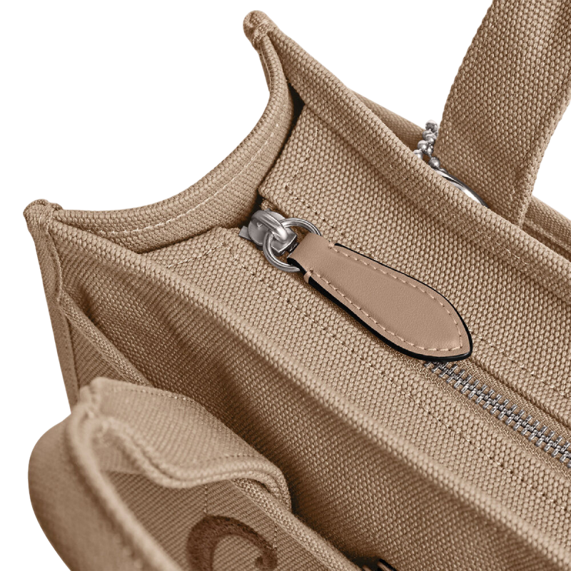 The Coach Cargo Tote 26 with Webbing Strap in Black is a sleek, compact companion that blends effortless sophistication with practical design. Expertly crafted from canvas, grosgrain, and recycled leather, it showcases Coach’s signature cursive embroidery and iconic turnlock closure. Despite its smaller size, the tote offers ample room to hold an iPad and essentials, with two exterior pockets for convenient organization. Designed for modern versatility, it includes a removable webbing strap for shoulder or crossbody wear. Thoughtfully made with cotton sourced from regenerative farms, this lightweight carryall reflects Coach’s commitment to sustainable craftsmanship and timeless elegance.