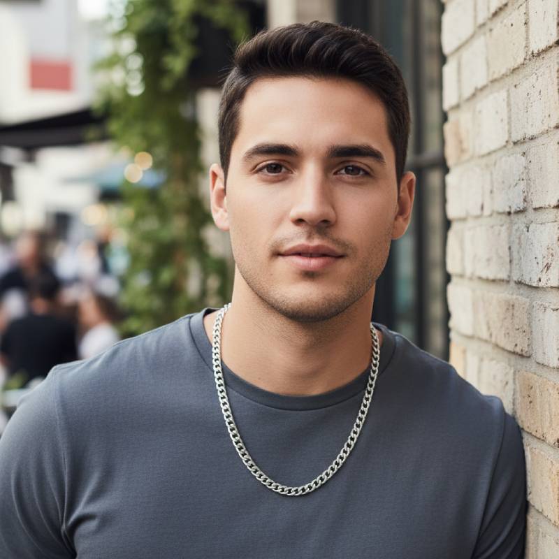 Crafted for timeless masculine style, the 14K Men's 22" or 24" Cuban Chain Necklace in 925 Sterling Silver showcases a bold yet refined look with it's classic interlocking Cuban links. The necklace delivers an impressive shine and a thick, durable feel that complements both everyday wear and special occasions. Perfectly sized at 22" or 24", it sits comfortably at the neckline, making it an essential statement accessory for men who appreciate luxurious craftsmanship and modern elegance.