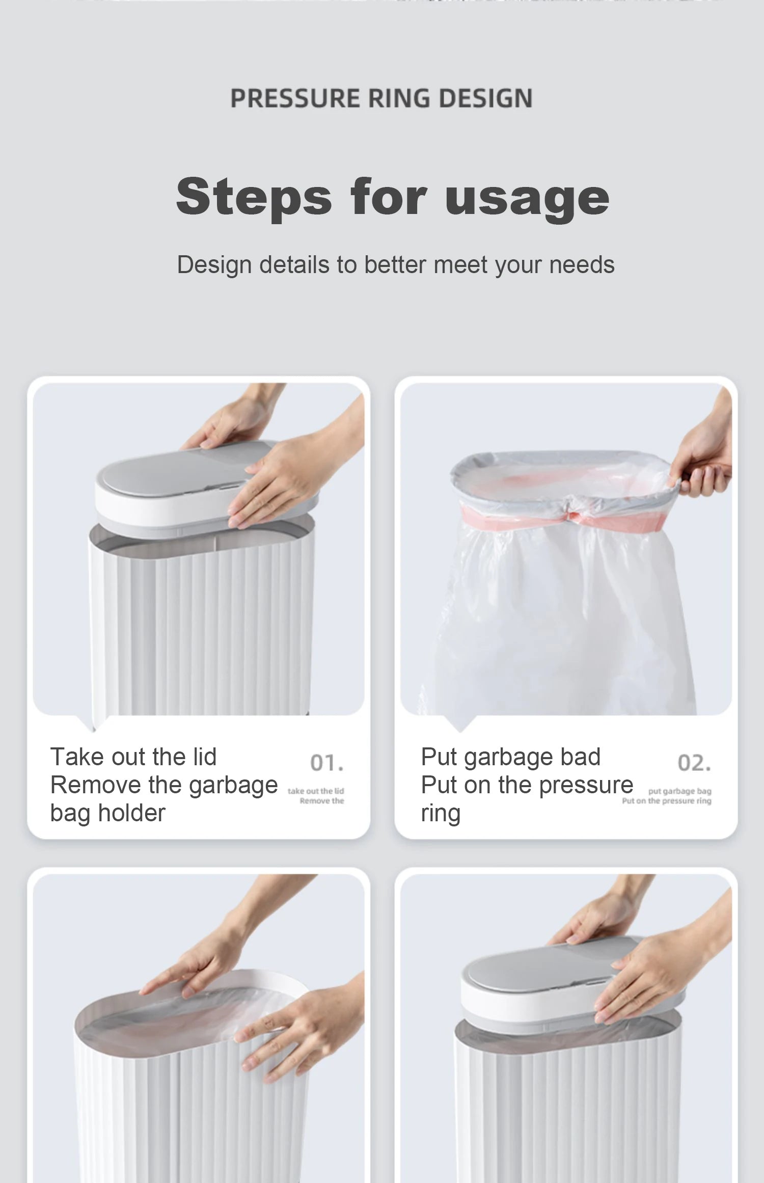 Whether it's for your bathroom or kitchen, this versatile induction garbage bin seamlessly blends functionality with modern aesthetics, making it the ideal choice for your home.