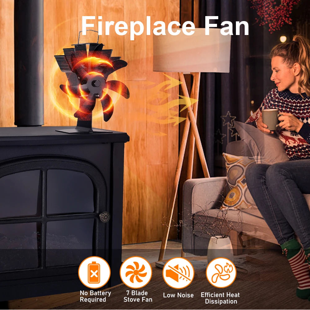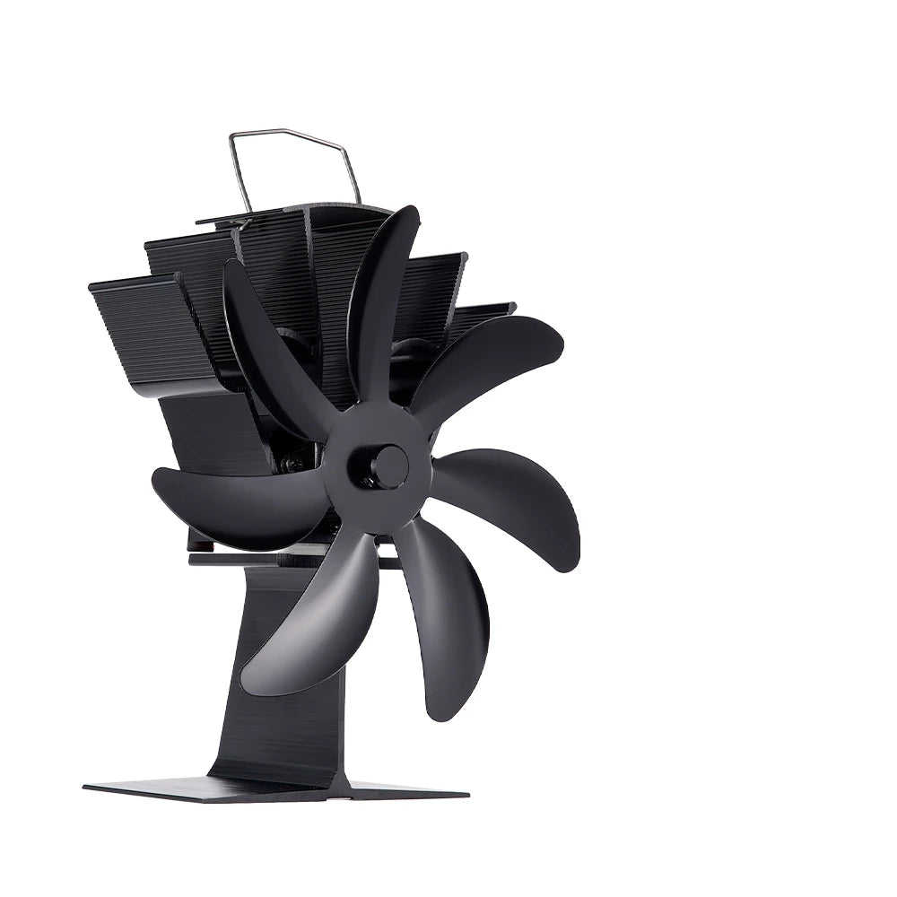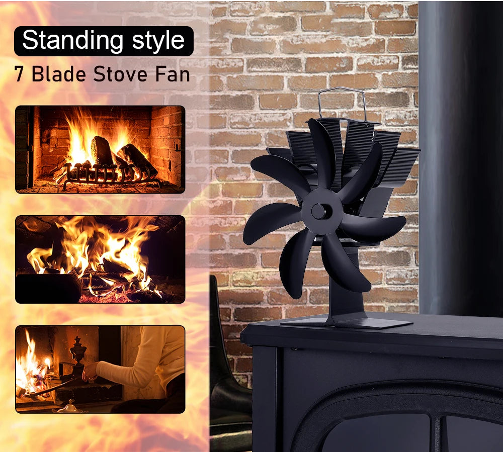 Ventilador de estufa de 7 aspas, ventilador de chimenea alimentado por calor, quemador de leña, ventilador ecológico de aleación de aluminio, hogar silencioso, distribución eficiente del calor
