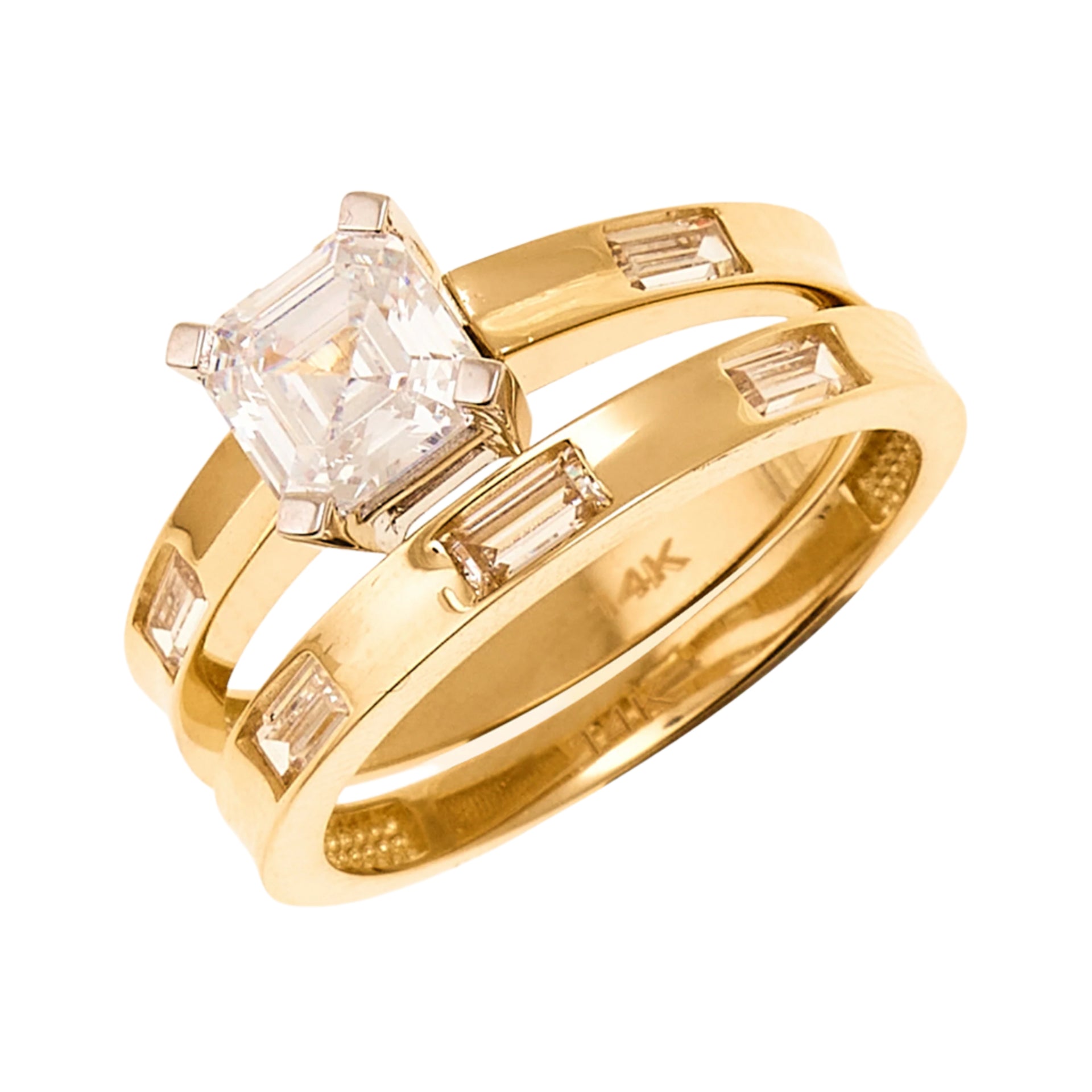 Gold Cubic Zirconia Wedding Duo Set in 14K Yellow Gold