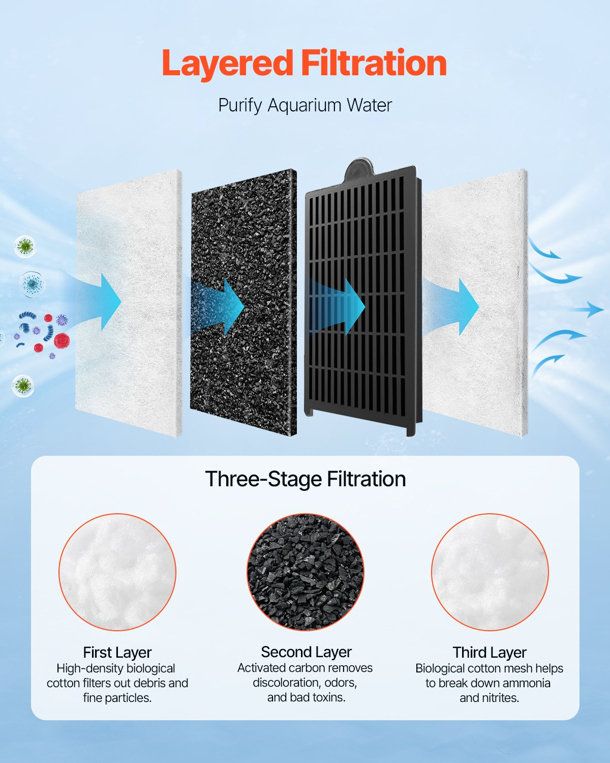Set Quantity: 8 pcs,Filtration Function: Carbon Filtration + Biological Sponge Filtration,Item Size: 4.45 x 2.28 x 0.39 inch / 113 x 58 x 10 mm (per filter sponge),Color: Filter Frame (Black) + Biological Filter Sponge (White),Item Model Number: HF0300A,Net Weight: 0.51 lbs / 0.23 kg,Main Material: Bracket: Plastic PP