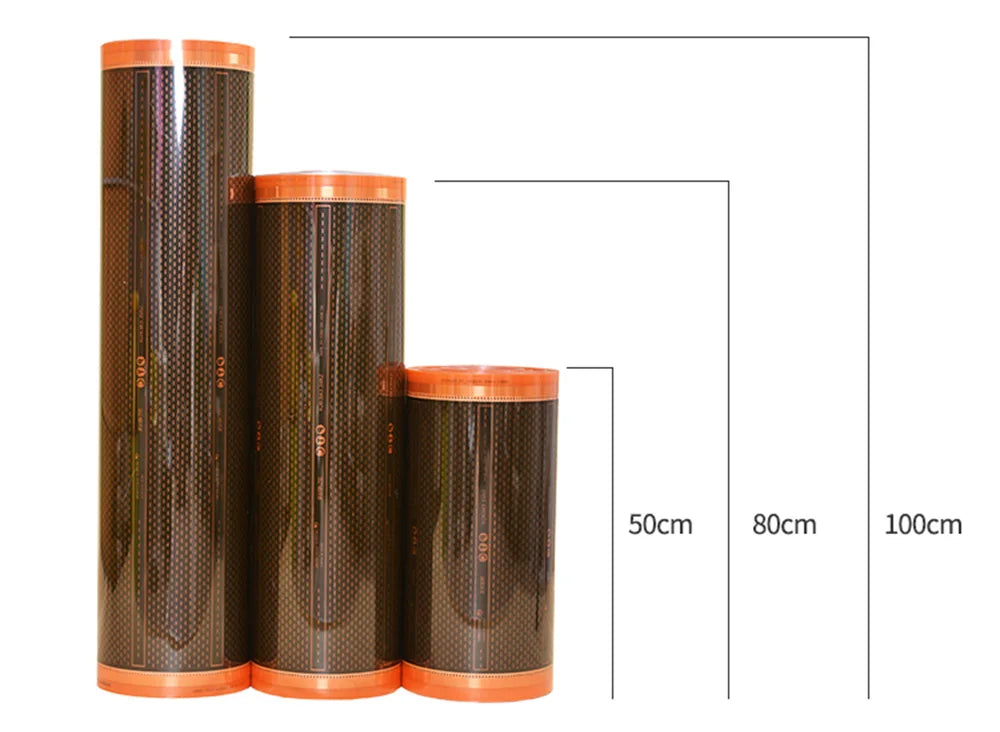 - La película calefactora es adecuada para usar debajo de varios tipos de pisos: pisos compuestos, pisos laminados, pisos de madera, mármol, baldosas, alfombras, pisos de PVC, etc.