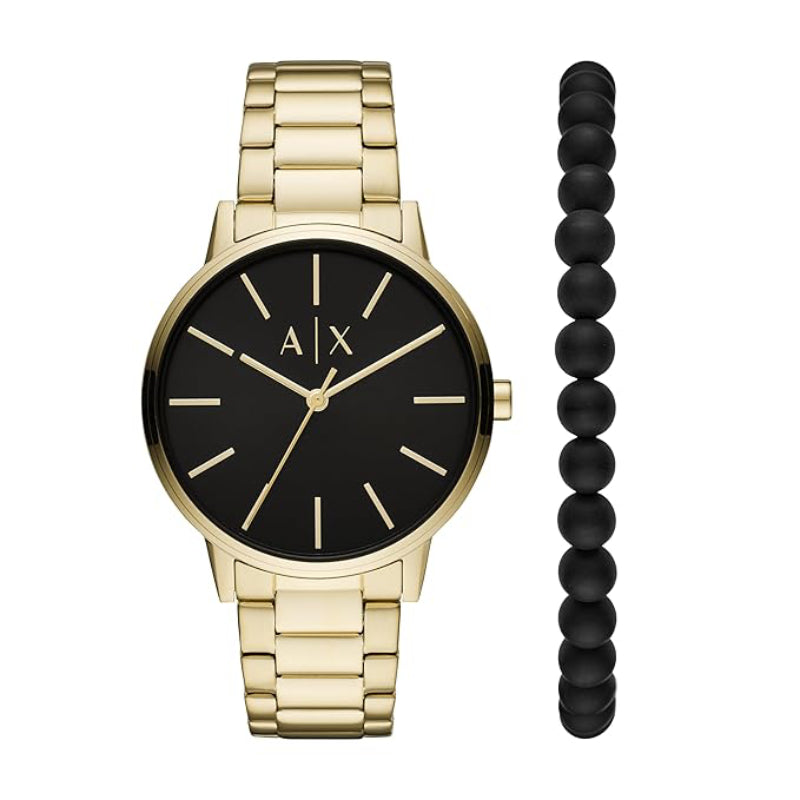 Armani Exchange Cayde Men's 42mm Gold-Tone Watch with Beaded Slider Bracelet - Black Dial