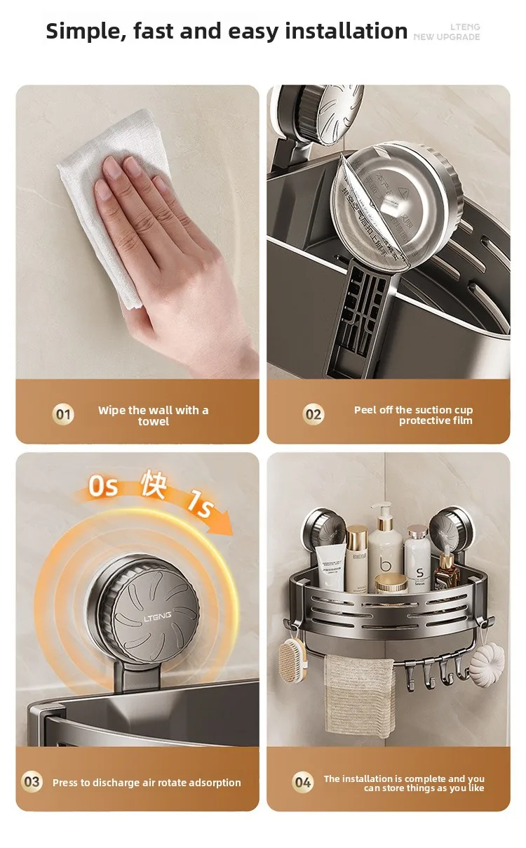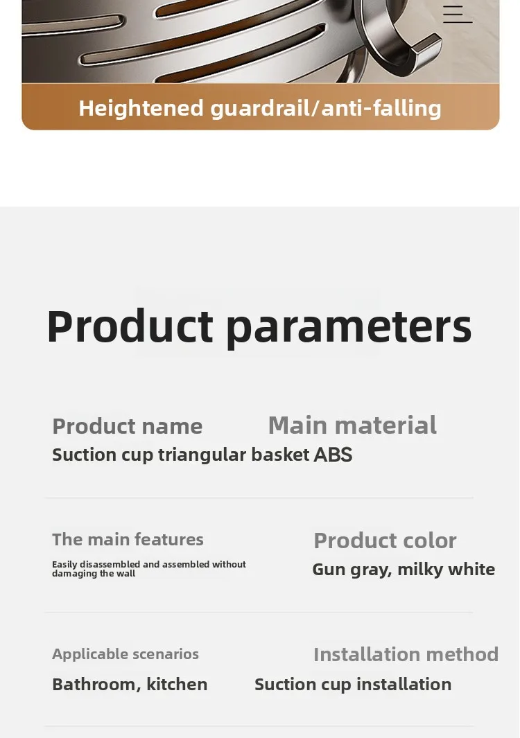 Bathroom suction cup triangular basket storage rack, bathroom washbasin corner, no need to drill holes, wall-mounted toilet
