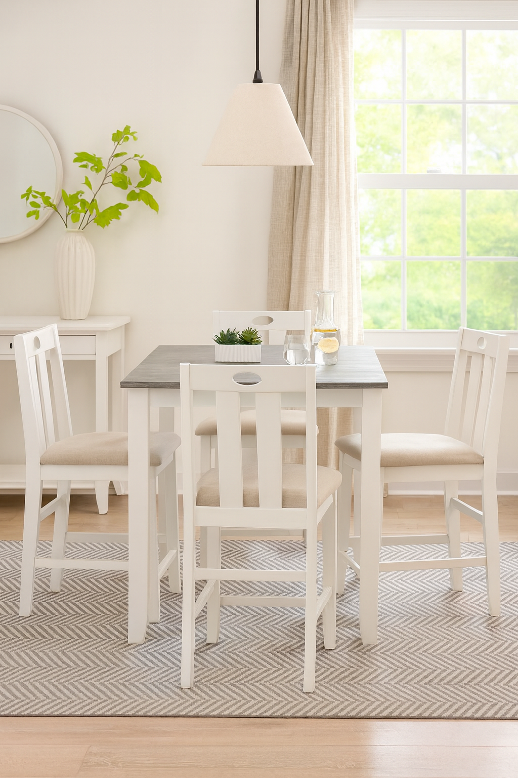 - Complete 5-Piece Set: Includes one counter height table and four matching chairs, ideal for small dining areas or kitchen nooks.