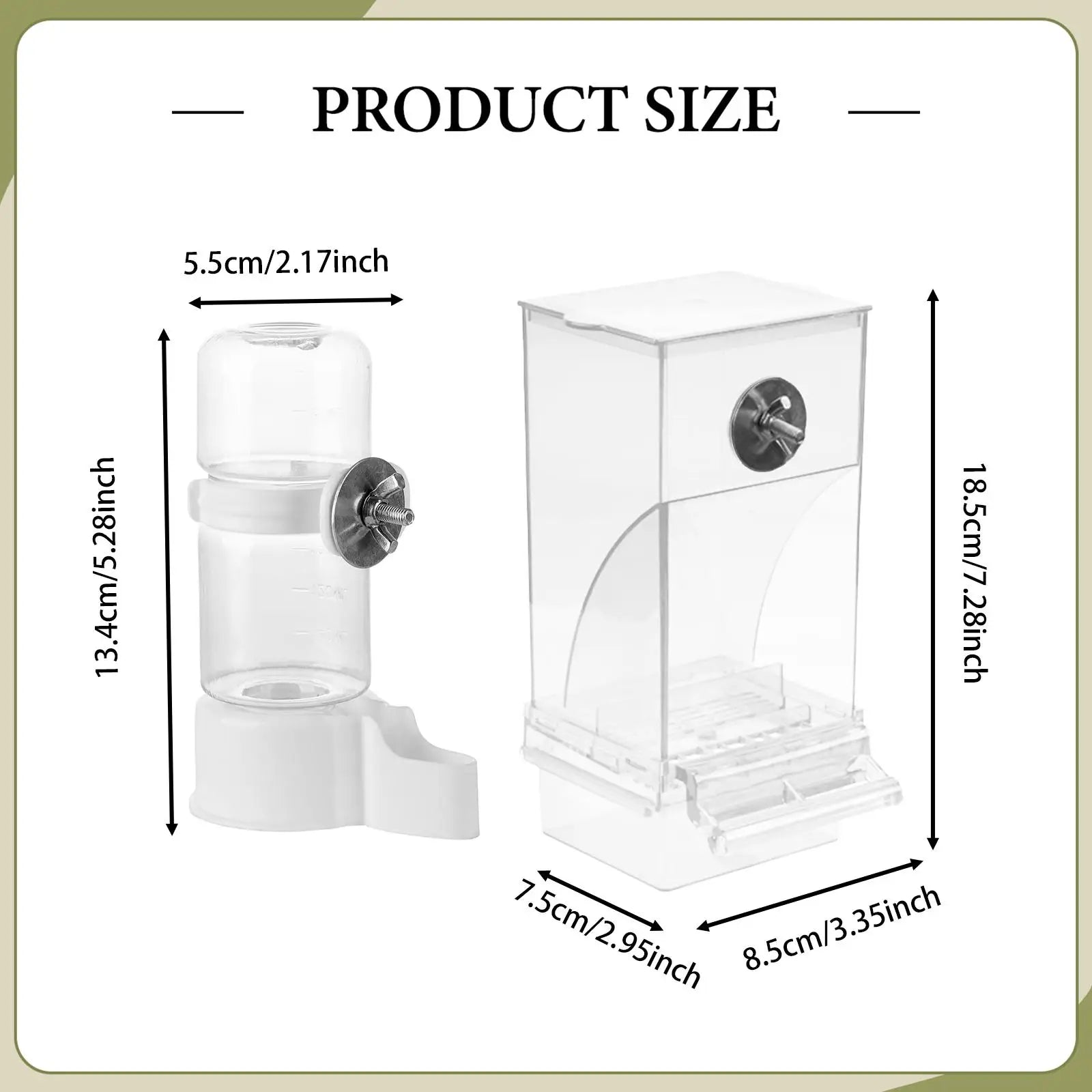 Bird Feeders and Waterer Clear Viewing Cage Accessory Food Dispenser for Canary Finch Cockatoo Cockatiel Lovebirds Budgies