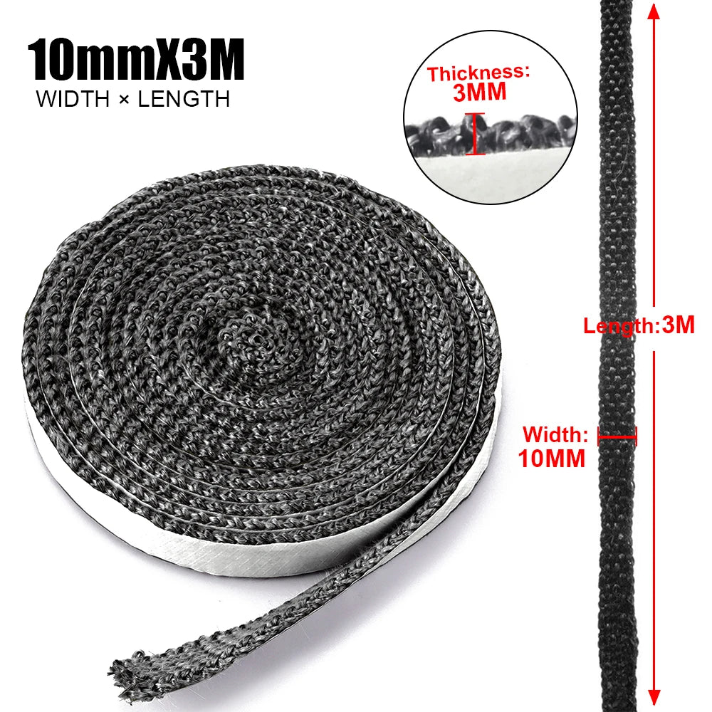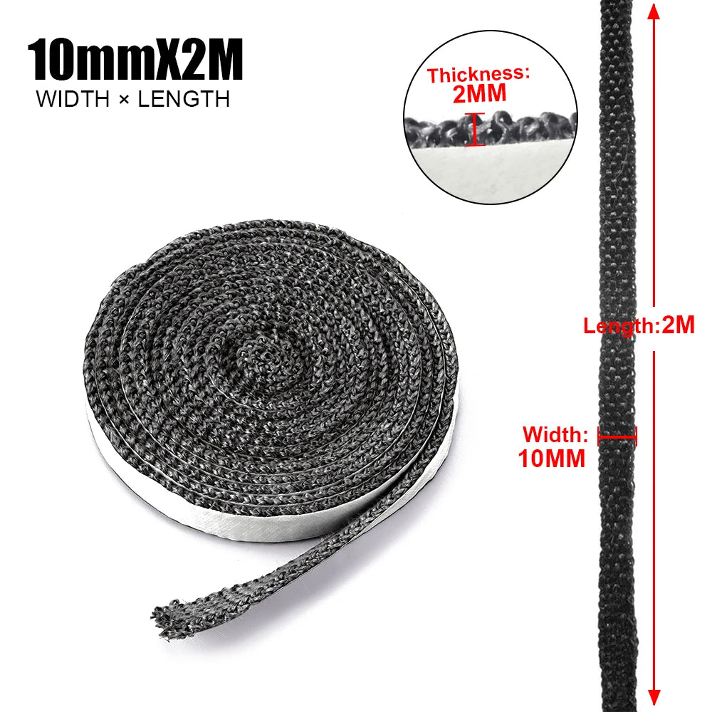 Cinta de sellado para puerta de chimenea de fibra de vidrio autoadhesiva de color negro, con cuerda plana para estufa, de repuesto, 10/15 mm de ancho y 2 m de largo