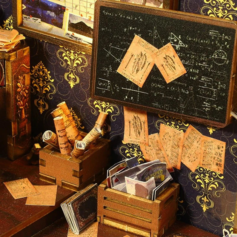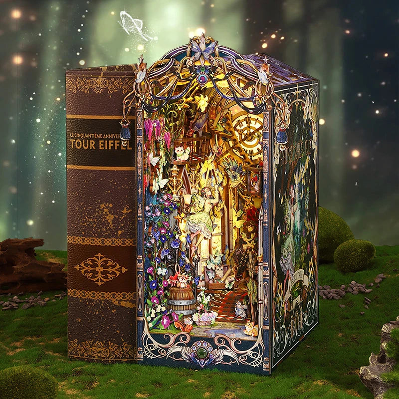 Wooden Doll House Bookcase Set DIY Toy with Furniture Gift