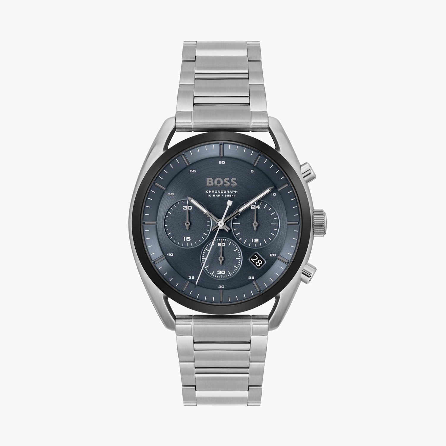 Reloj cronógrafo Boss Top Men de 44 mm con pulsera plateada y esfera azul
