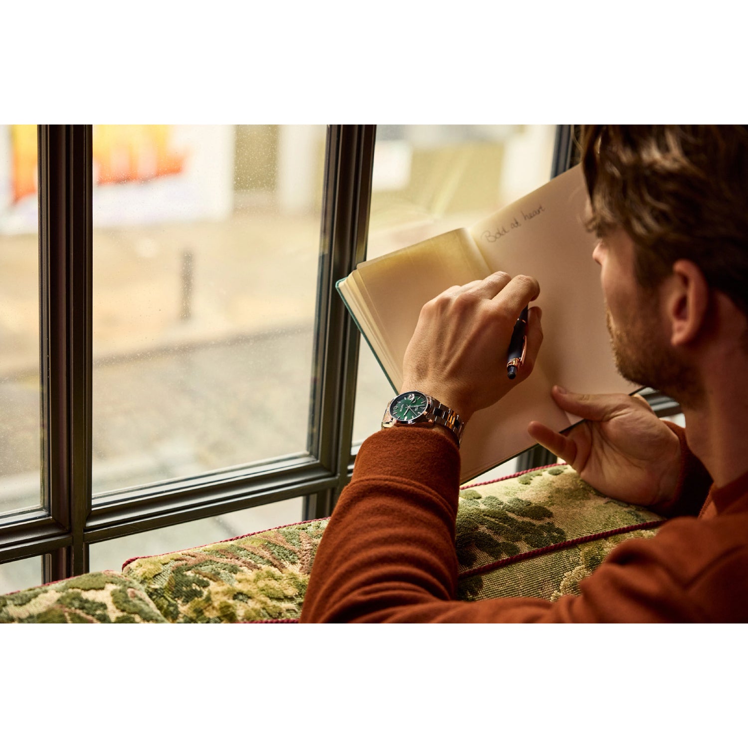 Reloj automático para hombre Bulova Surveyor de 39 mm con pulsera plateada y esfera verde