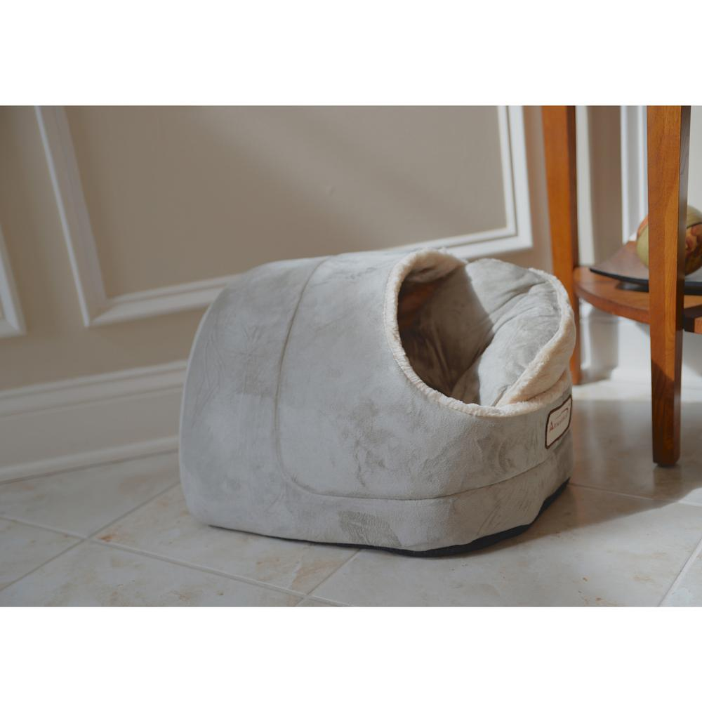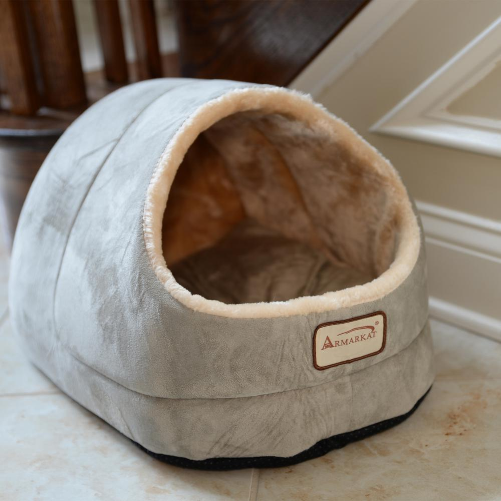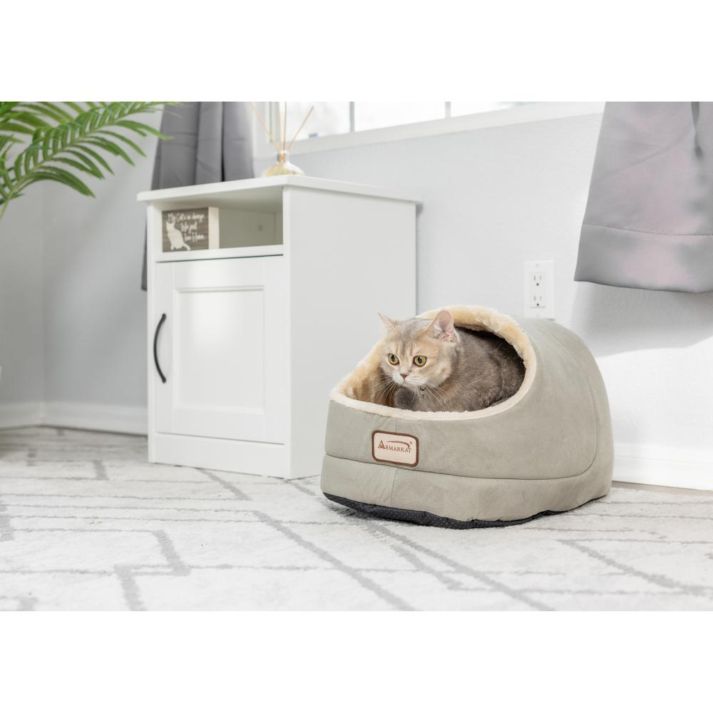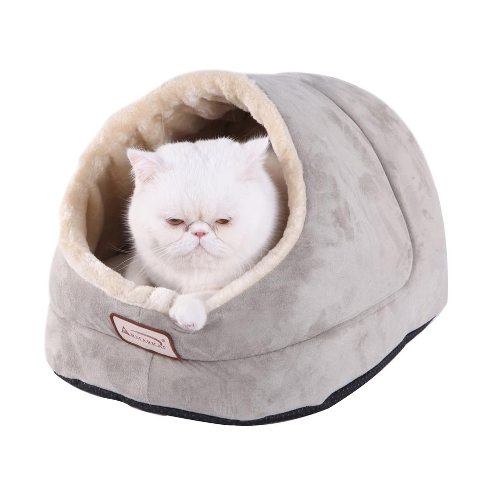 Sage Bed with Waterproof Base marries comfort, functionality, and downright adorable aesthetics for your cat's supreme serenity. This handsome cat bed, anchored by its faux suede exterior, features a faux carpet inside and a plush poly fill for maximum interior coziness. Its removable bottom is made from a waterproof and skid-free base, so even accidents won't impact its integrity. Dimensions: 18"(L) x 12.5"(W) x 11.5"(H) With removable pet mat, easy for wash. Six months manufacturer’s warranty against defects.