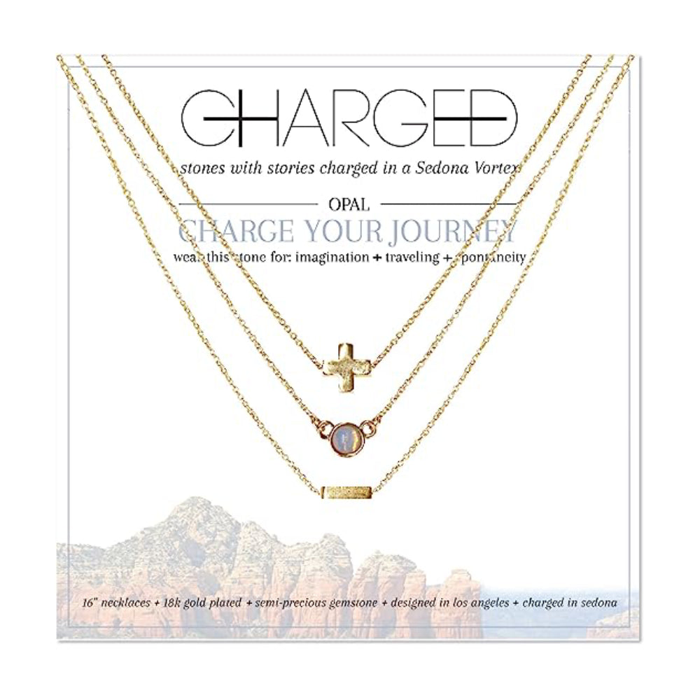 Realza tu colección de joyas con este collar de ópalo Charged de 16" bañado en oro de 18 k (juego de 3). Elaborado con una meticulosa atención a los detalles, este cautivador collar presenta tres impresionantes piedras preciosas de ópalo en una cadena bañada en oro de 18 k. La longitud de 16" se adapta perfectamente a tu escote y añade un toque de elegancia a cualquier atuendo. Ya sea que los uses individualmente o los apiles para lograr un estilo más atrevido, estos collares son versátiles y elegantes sin esfuerzo.