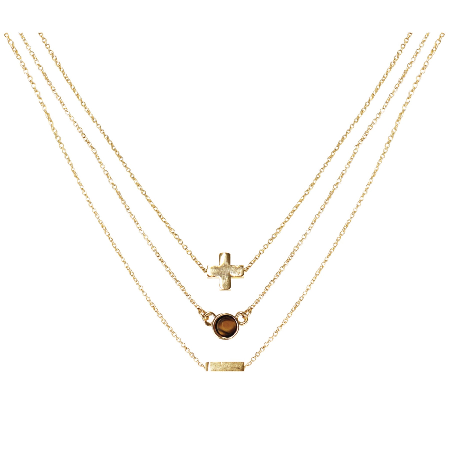 Collar chapado en oro de 18 k y ojo de tigre de 16" (juego de 3)