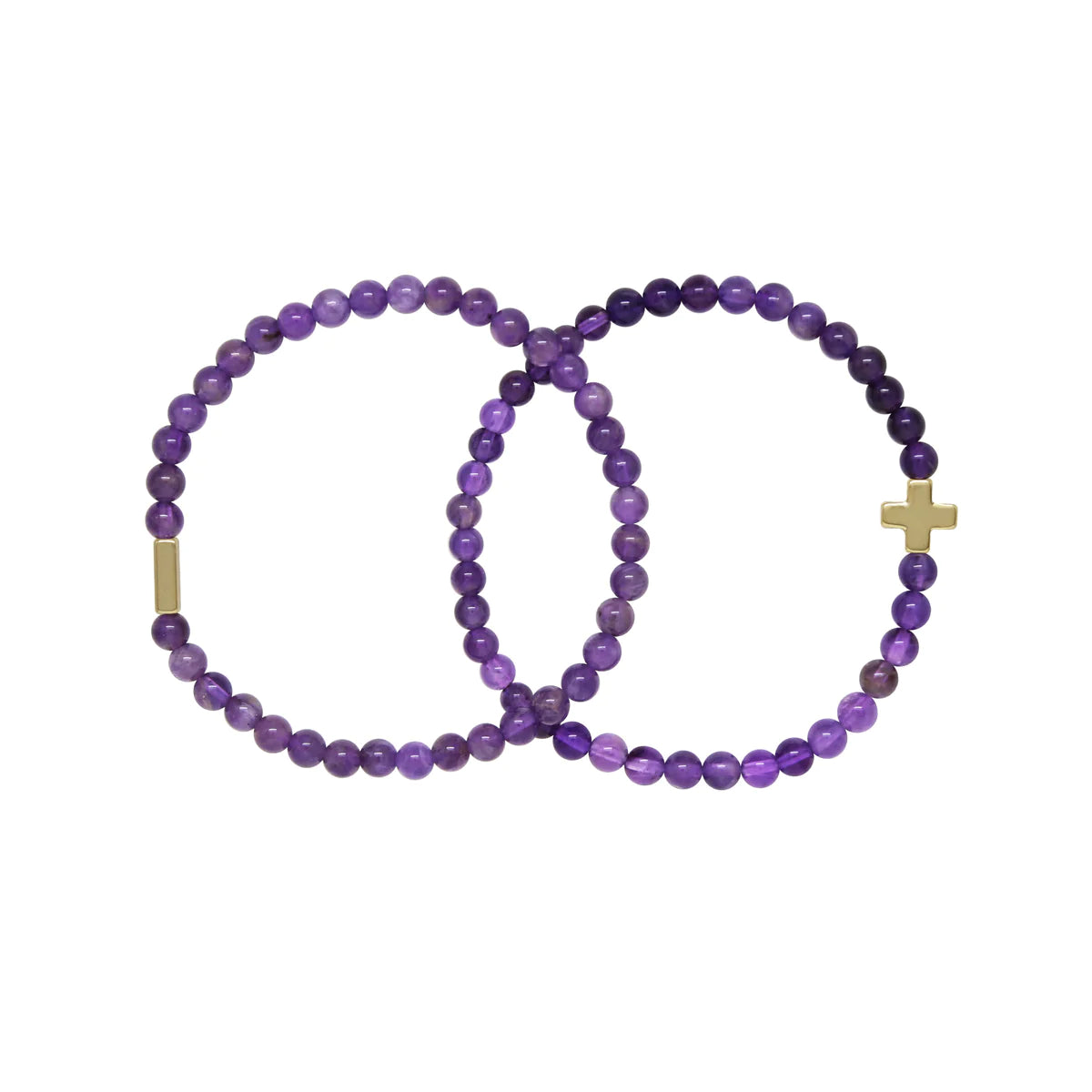 Pulsera elástica de oro y amatista para mujer (juego de 2) - Pequeña/mediana
