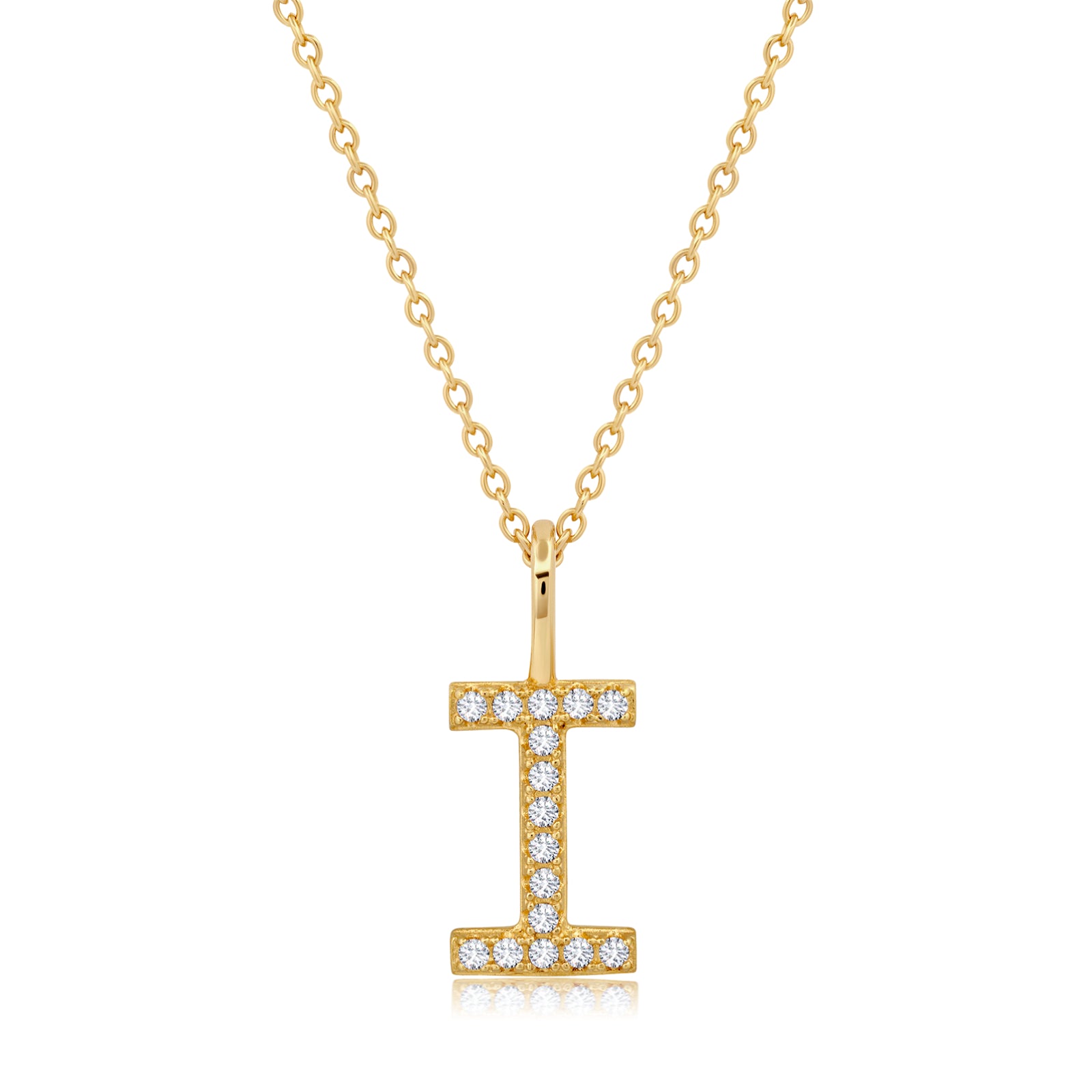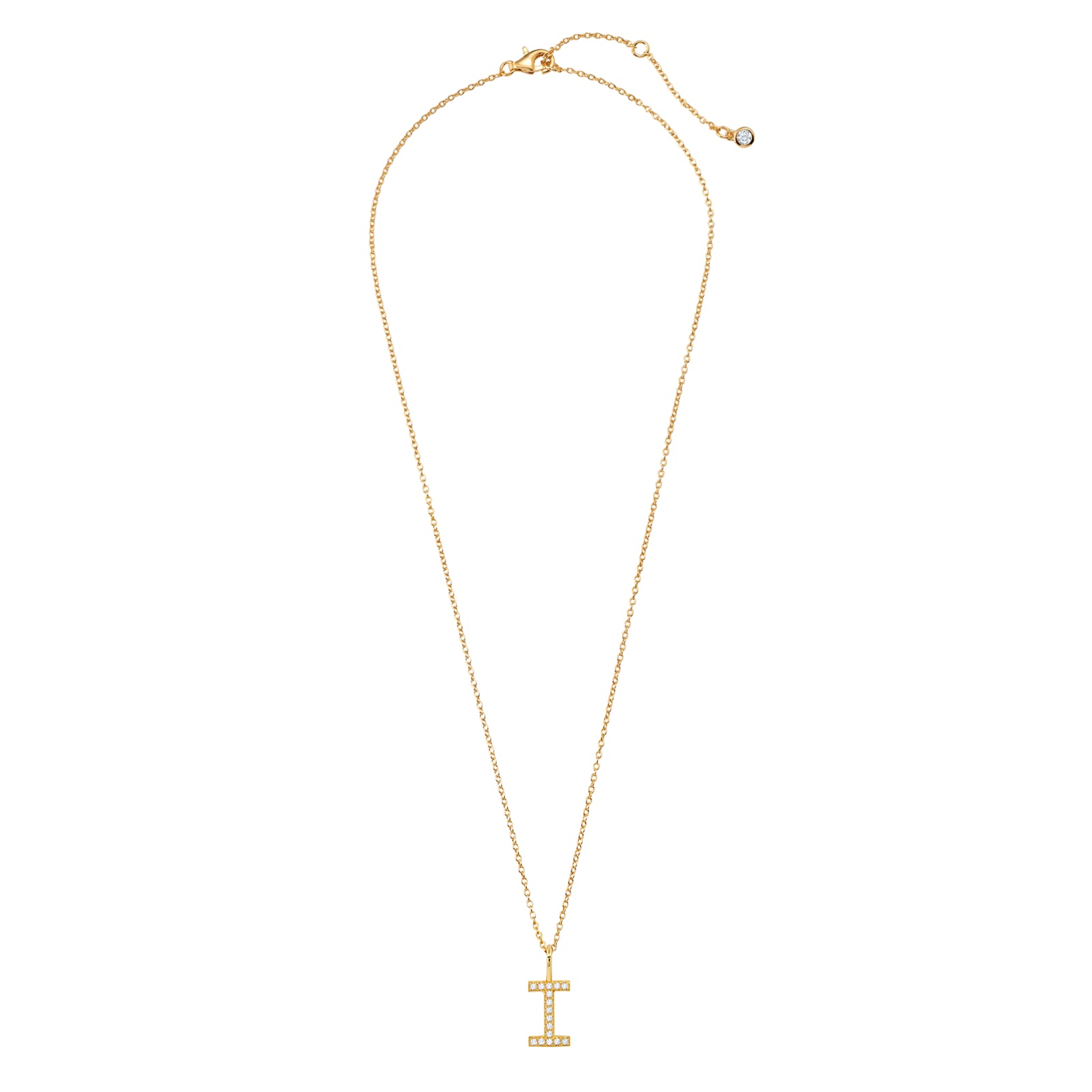 Collar con colgante inicial de circonita cúbica de 18" y 0,115 ct con la letra "I" de Crislu en plata de ley 925 bañada en oro amarillo de 18 quilates