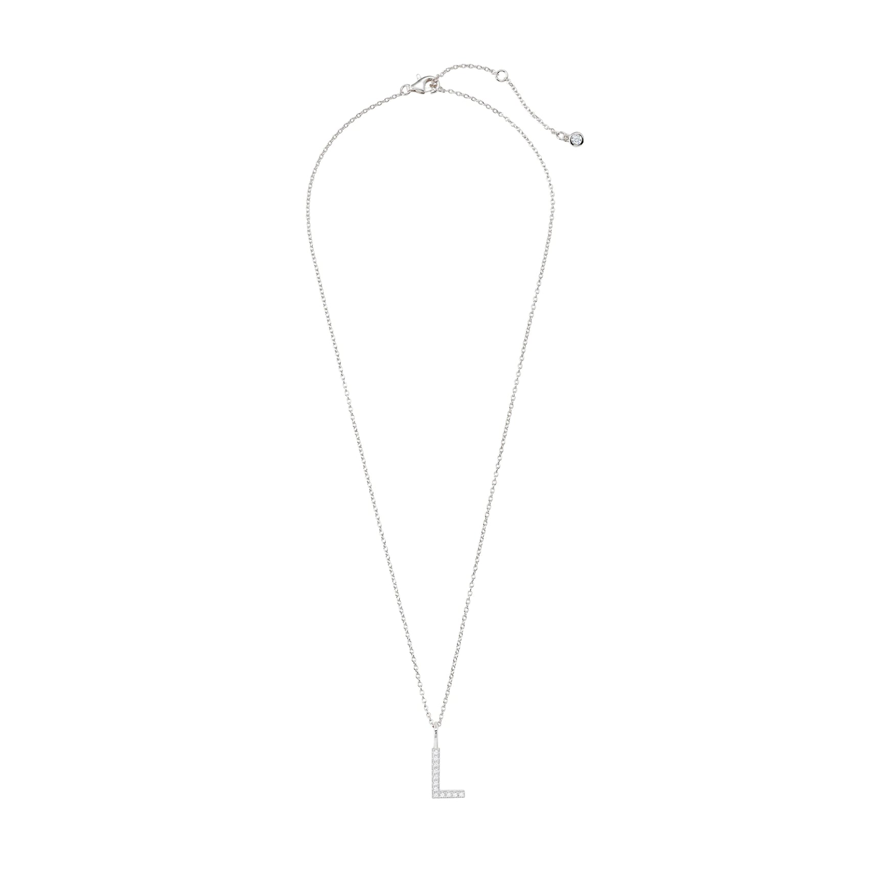 Collar con colgante inicial de circonita cúbica de 18" y 0,115 ct con la letra "L" de Crislu en plata de ley 925 bañada en platino puro