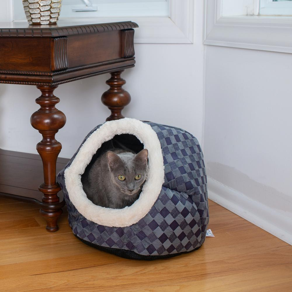 Cuddle Cave Cat Bed C44 For Cats & Puppy Dogs, Blue Checkered