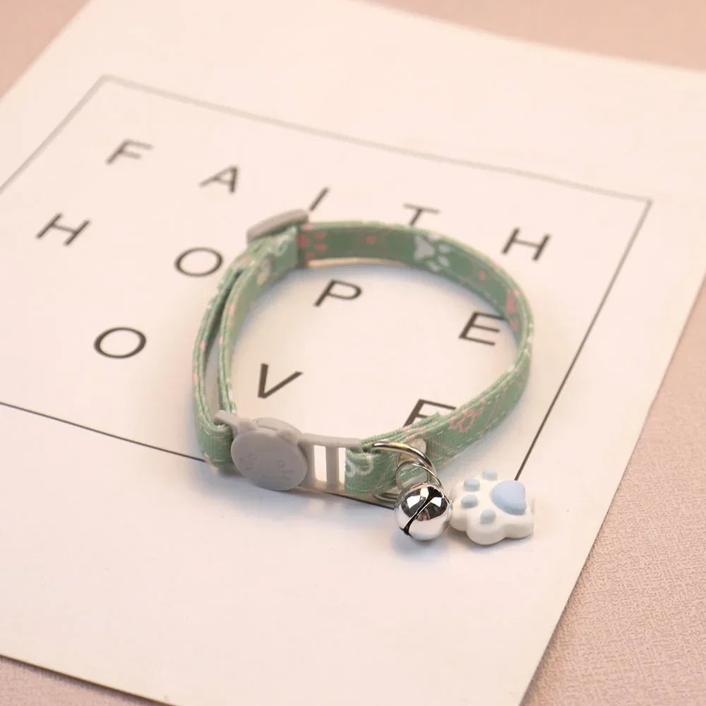 Cute Neck Pet Collar with Bell for Small Dogs Puppy Kitten Stuff Things Accessories Adjustable Footprint Cat Breakaway Collar