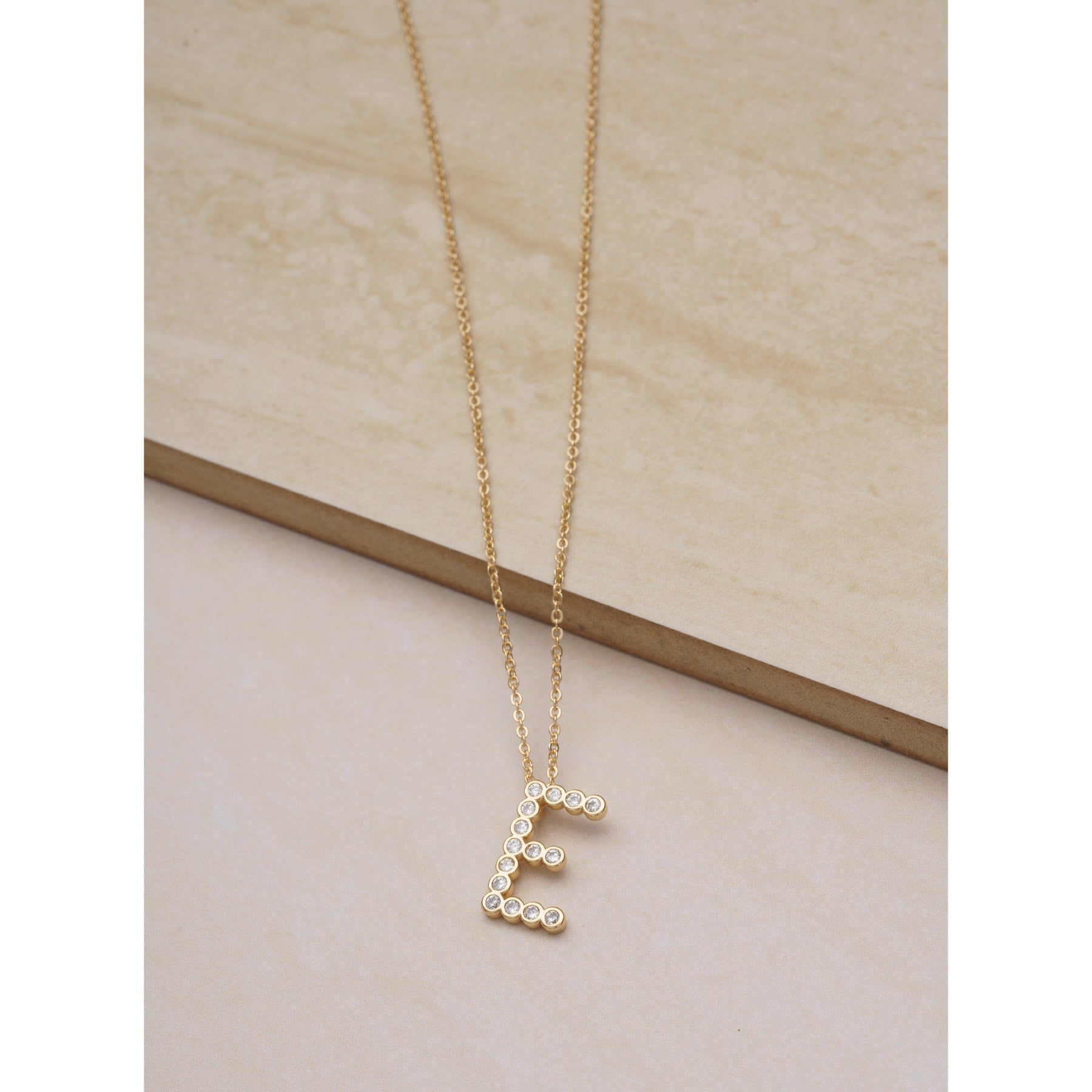 Collar con colgante de inicial "E" de cristal simple de 16,5" de Ettika en baño de oro de 18 k sobre latón y acero