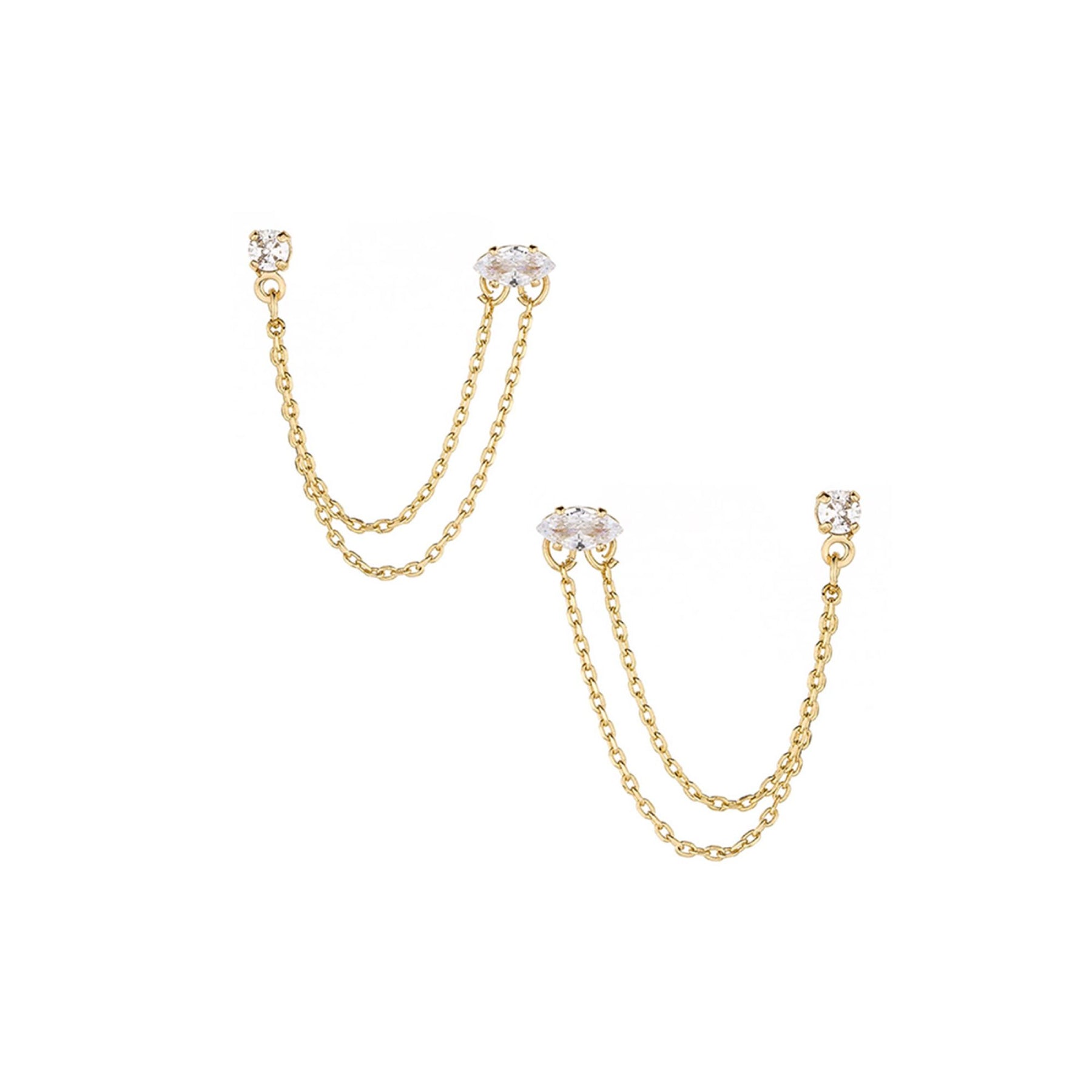Pendientes colgantes chapados en oro de 18 k con cadena perforada de dos orificios para mujer con cristales blancos de Ettika