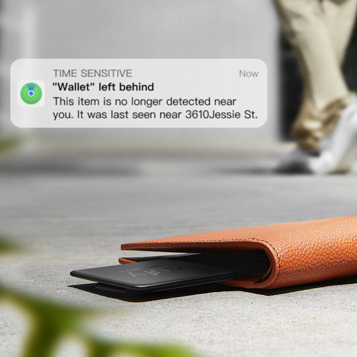 - Ultra-slim card fits in wallets or bags and tracks items via Apple’s Find My app.
