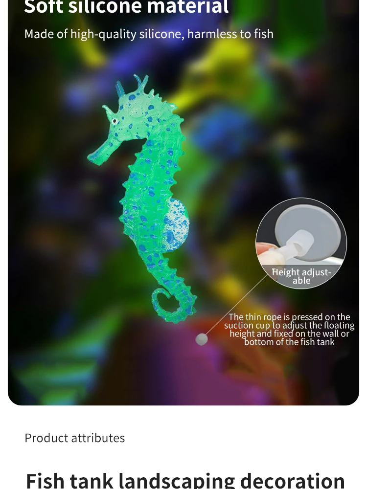 Fish Tank Aquascape Decorations Simulation Glow in Dark Silicone Seahorse With Suction Cups Aquarium Landscape Decorations
