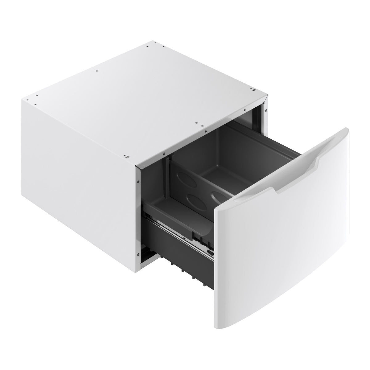 Eleve su secadora o lavadora GE a una altura cómoda para trabajar. El cajón incorporado ofrece un acceso sencillo al detergente y otros accesorios de lavandería. Los cojinetes de bolas de acero inoxidable permiten un deslizamiento fácil de los cajones de almacenamiento. Puede instalar fácilmente su secadora o lavadora porque todas las piezas de instalación están incluidas con un pedestal.