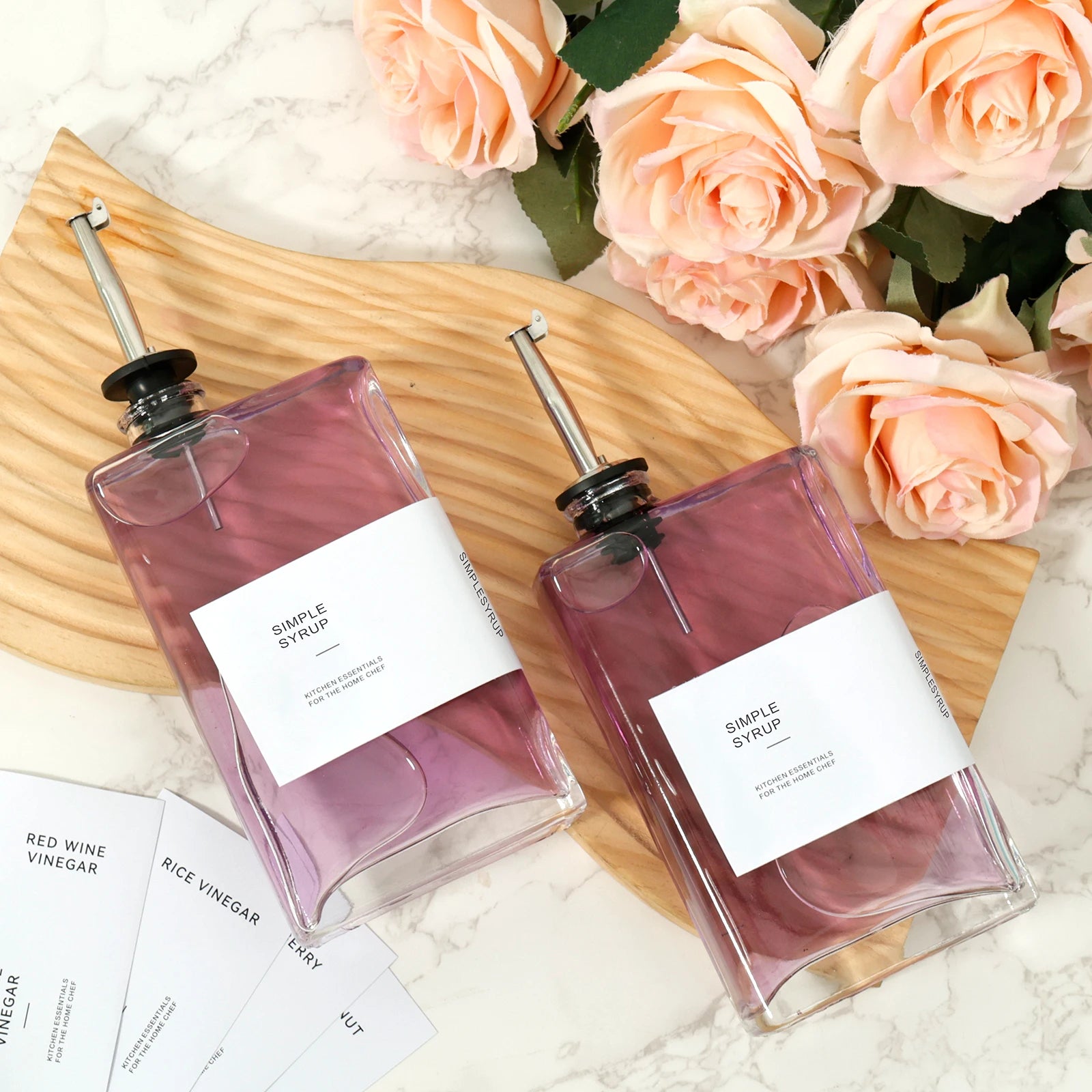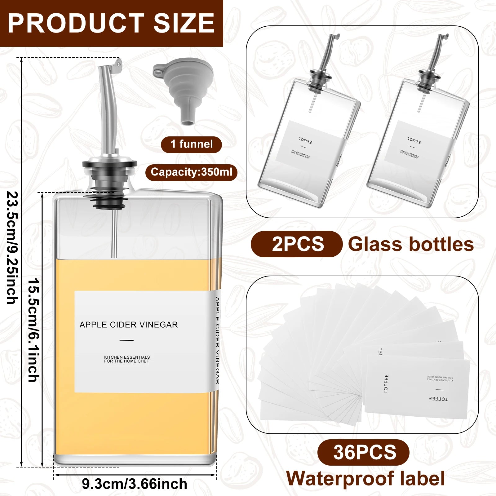 Glass Olive Oil and Vinegar Dispenser Bottle 350ml with Sort Sticker Stylish Kitchen Gadget
