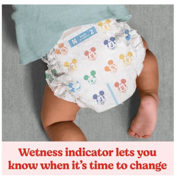 - Wetness indicator that changes color for easy diaper change alerts.