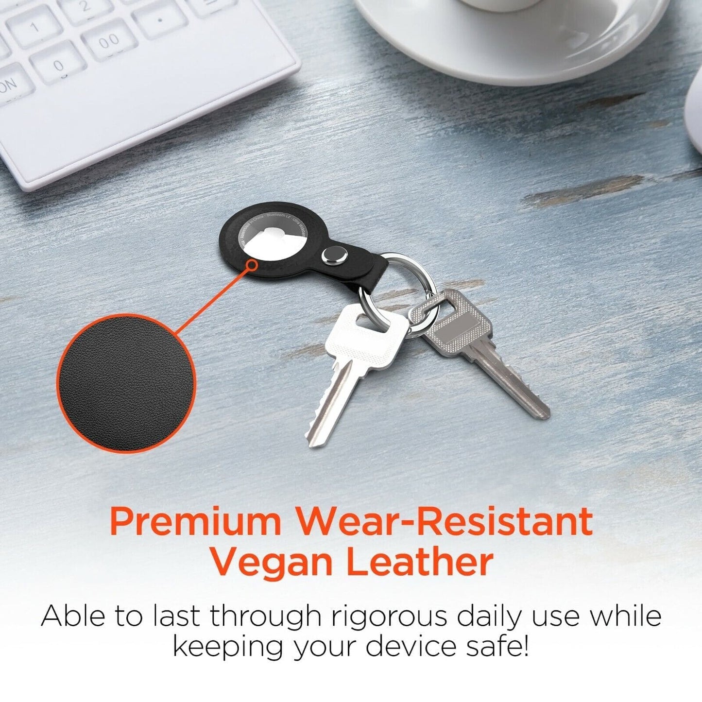 Mantén tus AirTags protegidos y con estilo con el AirCover de cuero vegano de HYPERGEAR. Este llavero de alta calidad está diseñado para sujetar de forma segura tu AirTag y te permite llevarlo contigo a donde quiera que vayas. El diseño de cuero vegano resistente y duradero proporciona una excelente protección para tu AirTag y, al mismo tiempo, agrega un toque de elegancia a tu estilo. El llavero viene con un clip resistente para que puedas sujetarlo a tus llaves, mochila, bolso, billetera o cualquier otro lugar donde quieras llevar tu AirTag.