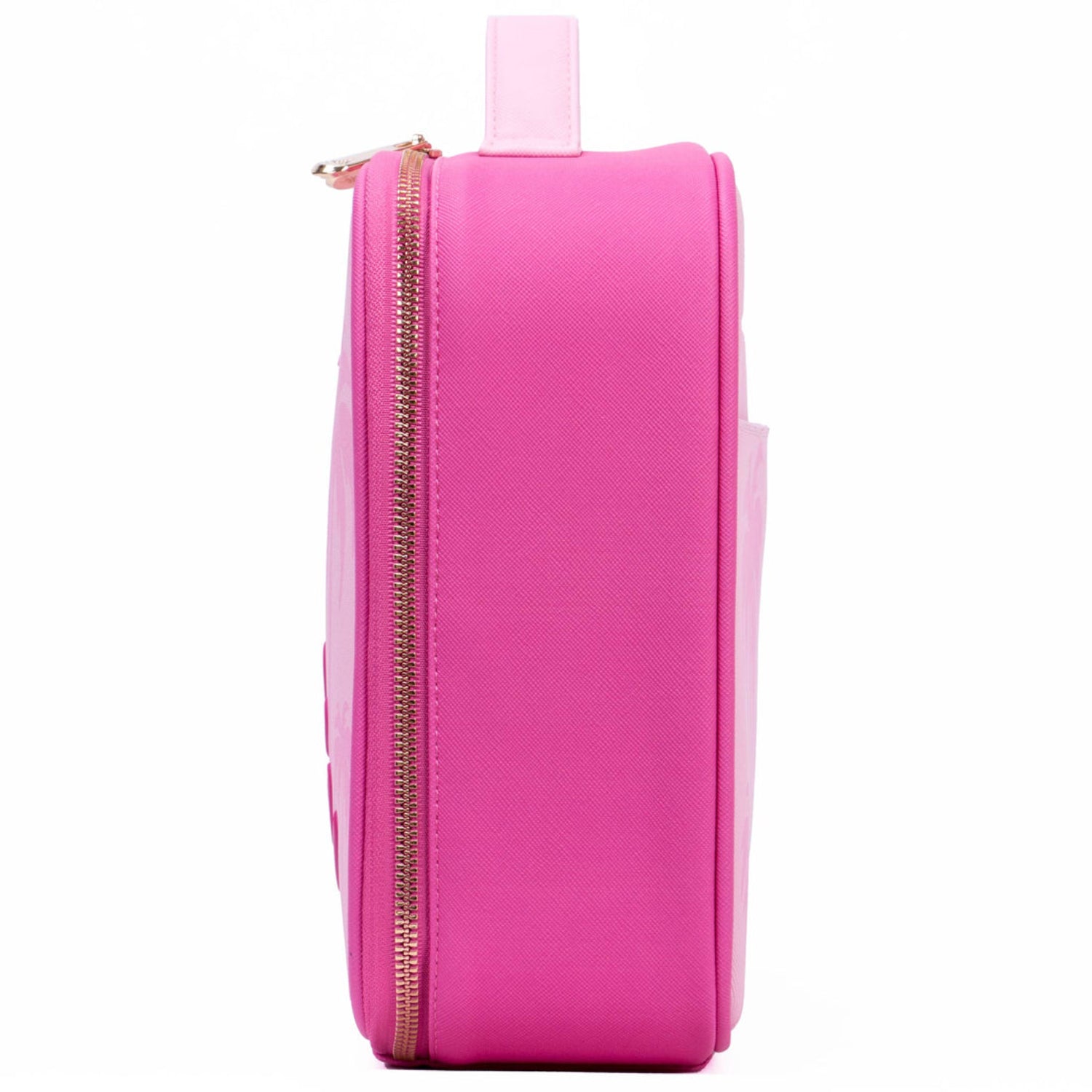Experimente la combinación única de organización y estilo con el exclusivo bolso de cosméticos Barbie de edición especial. Este bolso presenta un estampado de Barbie de Malibú con el logotipo de Barbie en relieve y palmeras que adornan el frente.