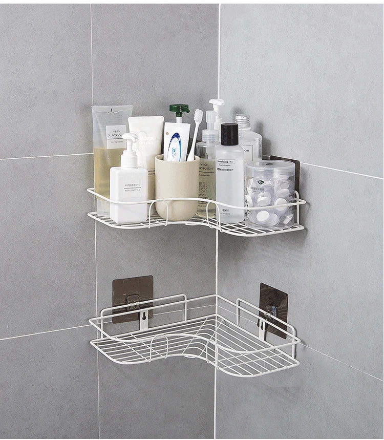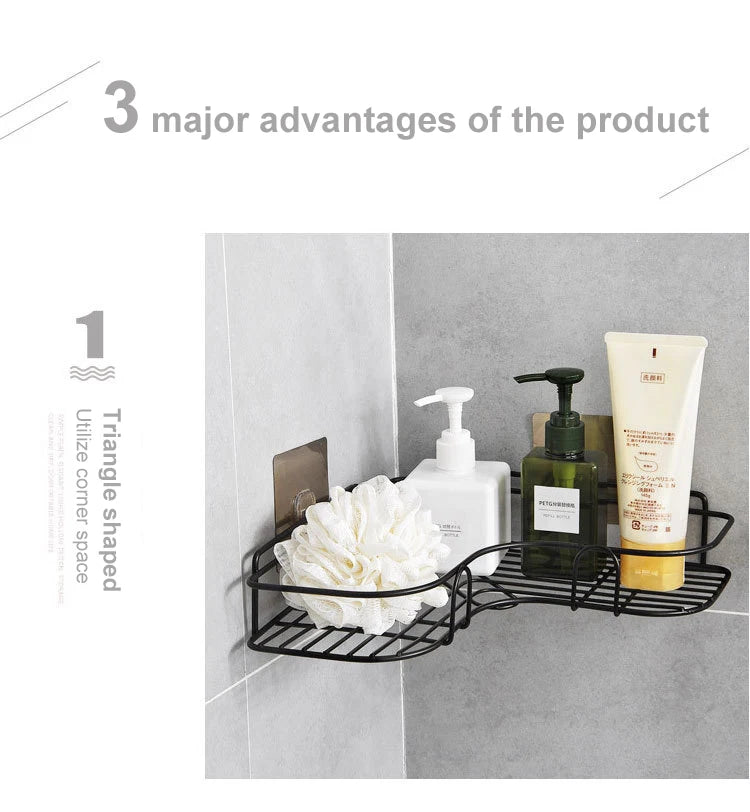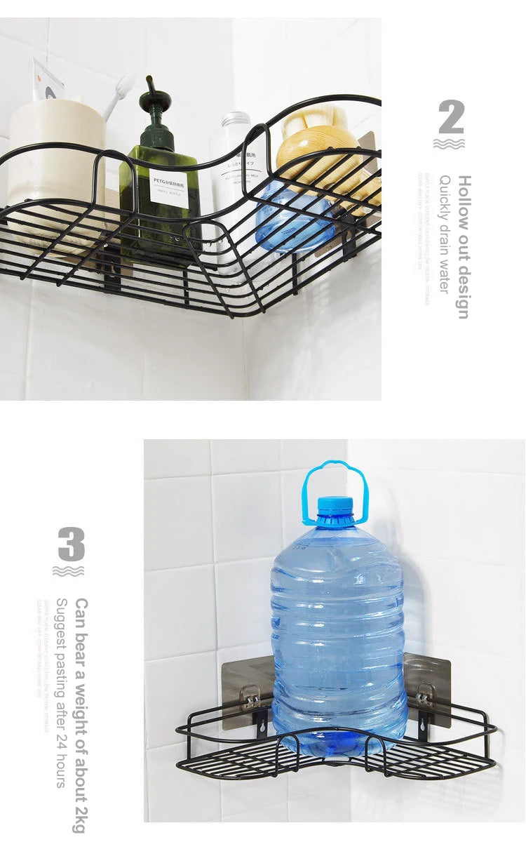 Estante de almacenamiento triangular de hierro para cocina y baño, estante de almacenamiento de esquina engrosado Love, estante de almacenamiento duradero
