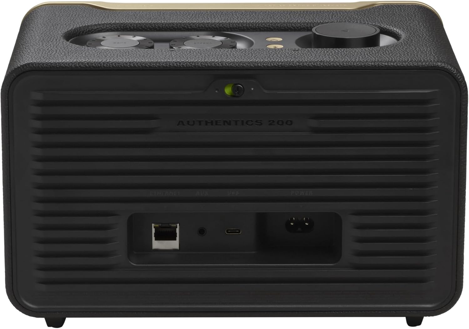 The JBL Authentics 200 Smart Home Speaker combines vintage aesthetics with modern audio technology. Featuring a retro-inspired design with a Quadrex grille, leather-like enclosure, and aluminum frame, it delivers a nostalgic look. Equipped with dual 25mm tweeters, a 5-inch woofer, and a 6-inch passive radiator, it offers clear highs and deep bass. With built-in Wi-Fi, Bluetooth, and support for AirPlay, Chromecast, and Spotify Connect, streaming is seamless. Notably, it supports simultaneous use of Google Assistant and Amazon Alexa, allowing versatile voice control. The speaker also features automatic self-tuning and can be managed via the JBL One app or on-device controls. Constructed with recycled materials, it's an eco-friendly choice for quality sound and smart home integration