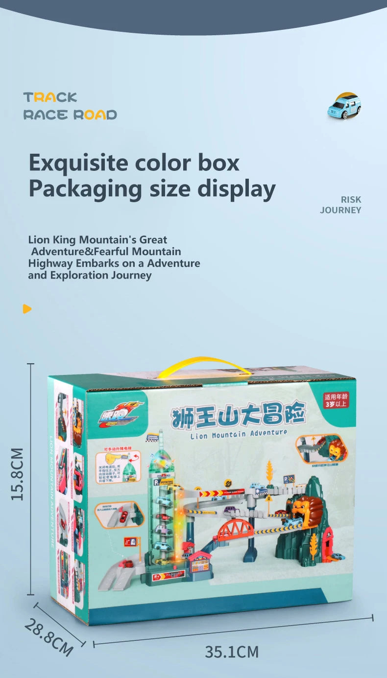 Lion Theme Car Track Set for Kids Educational Racing Toys with Diecast Cars Colorful Fun for Birthdays and Holidays