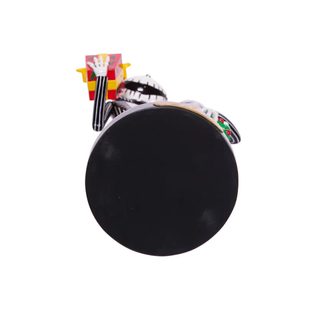 Este cascanueces de Jack Skellington de 25 cm de Kurt Adler es un divertido y festivo complemento para cualquier decoración navideña o colección de cascanueces. Jack lleva un esmoquin de rayas blancas y negras y sostiene un regalo decorado en una mano. Con la otra, rodea una lápida decorada.