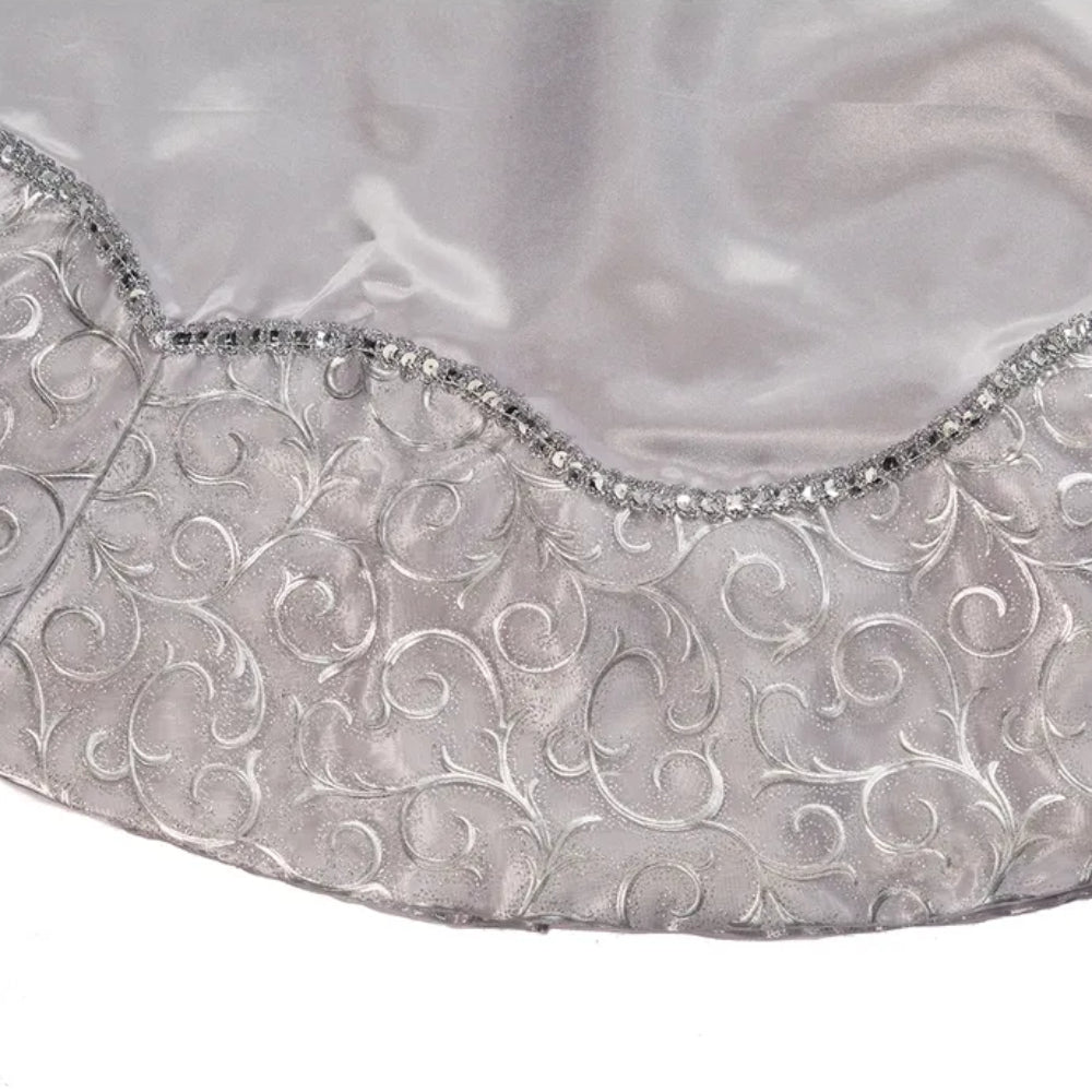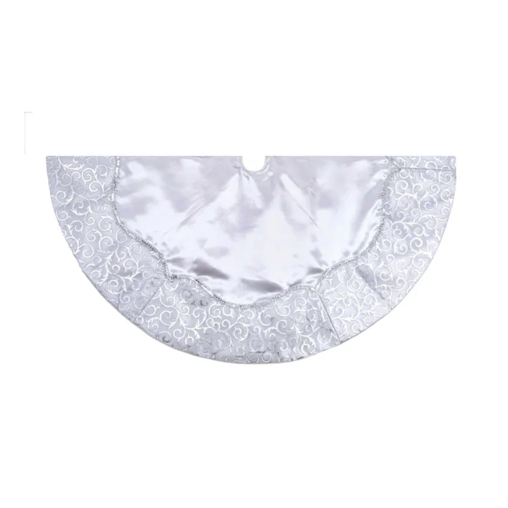 Falda para árbol de satén plateado de 48" con borde estampado de Kurt Adler
