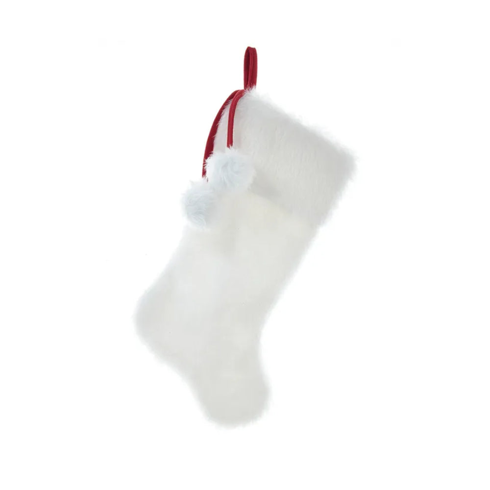 La media de abeto artificial blanca de Kurt Adler es un complemento festivo para tu decoración navideña. Esta media de abeto artificial blanca presenta un diseño completamente blanco con puños de felpa blanca y pompones.