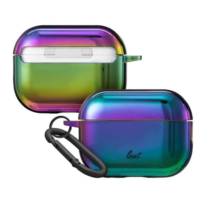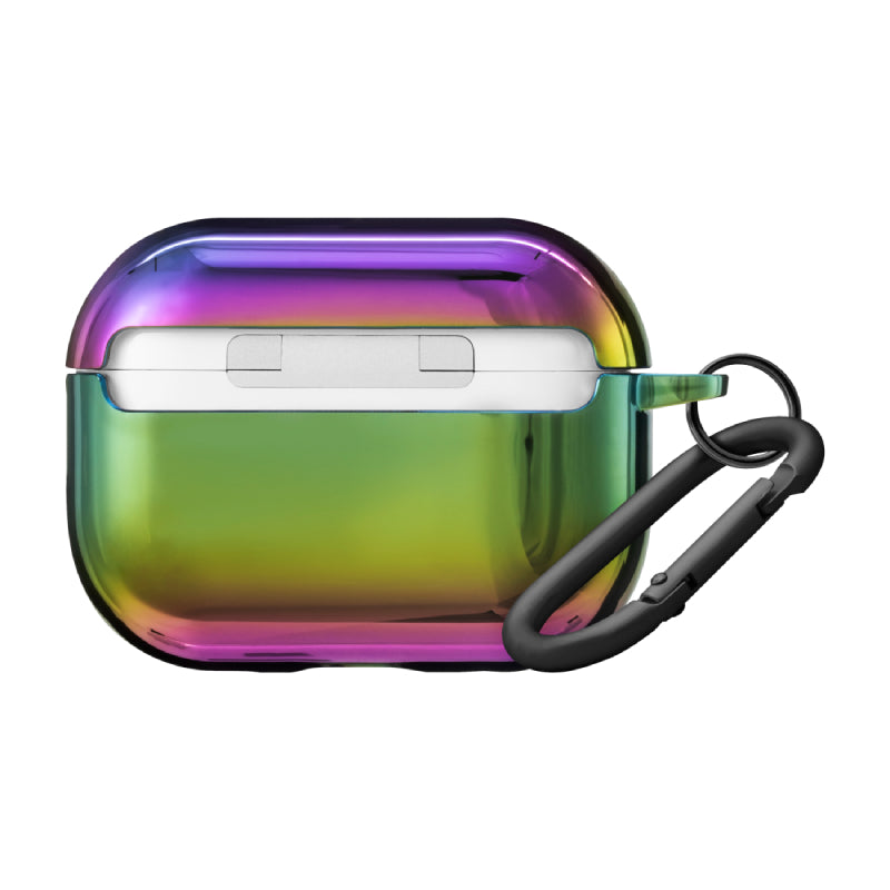 Holo es una funda duradera y resistente a los arañazos, perfecta para decorar tus AirPods. Con un revestimiento especial, esta funda se vuelve iridiscente al captar y reflejar la luz en todas las direcciones. Incluye un mosquetón para que puedas sujetar tus AirPods a tu bolso o a tus llaves, lo que te permitirá llevarlos contigo todo el día.