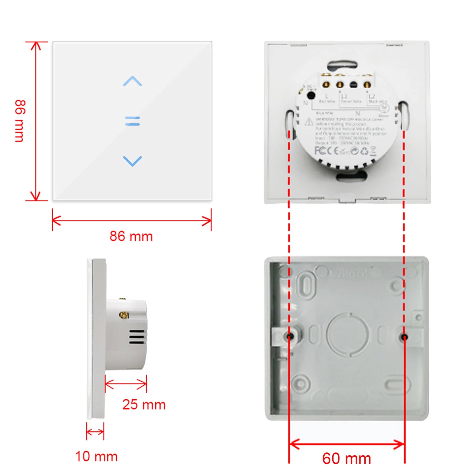 Dimensiones del interruptor : 86 mm x 86 mm x 35 mm