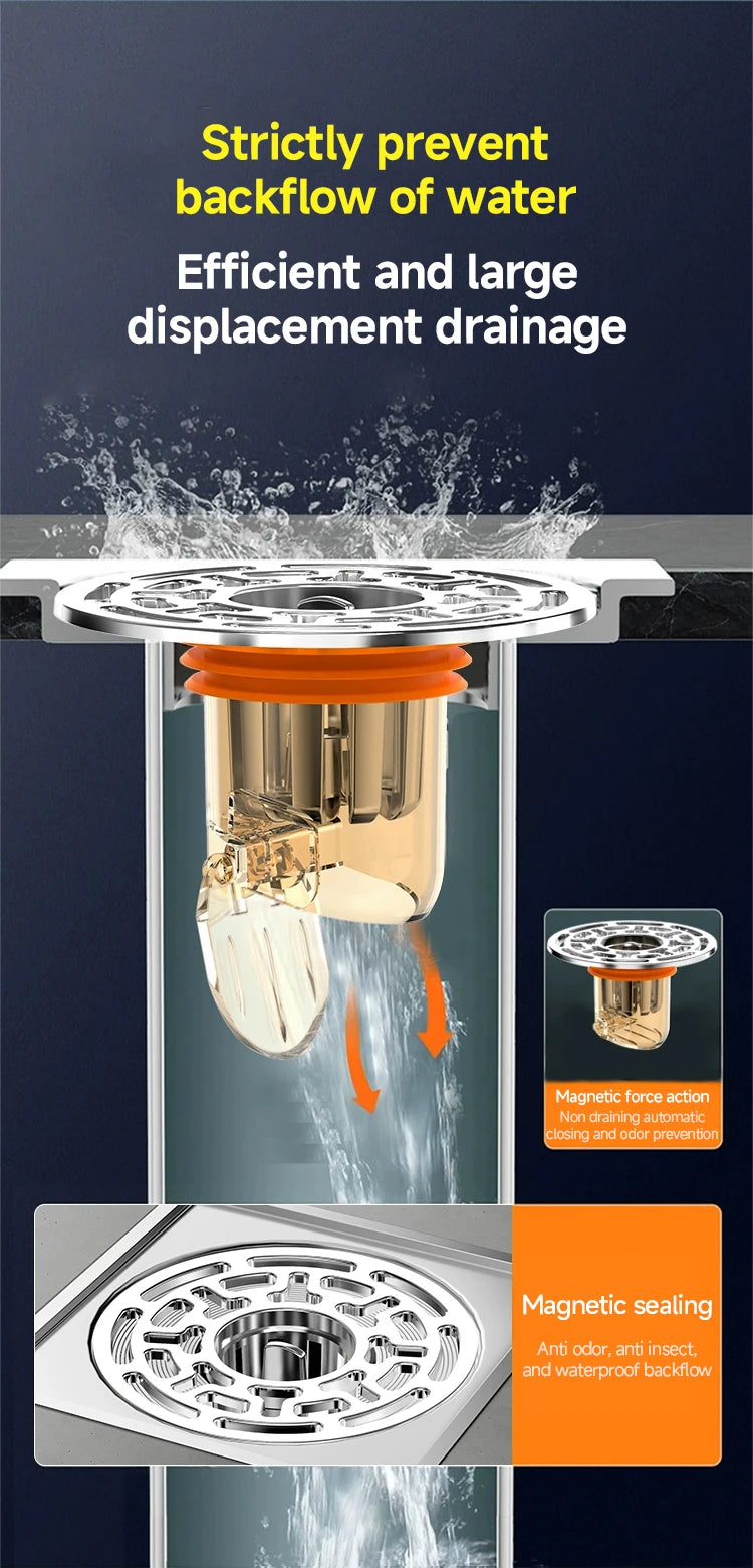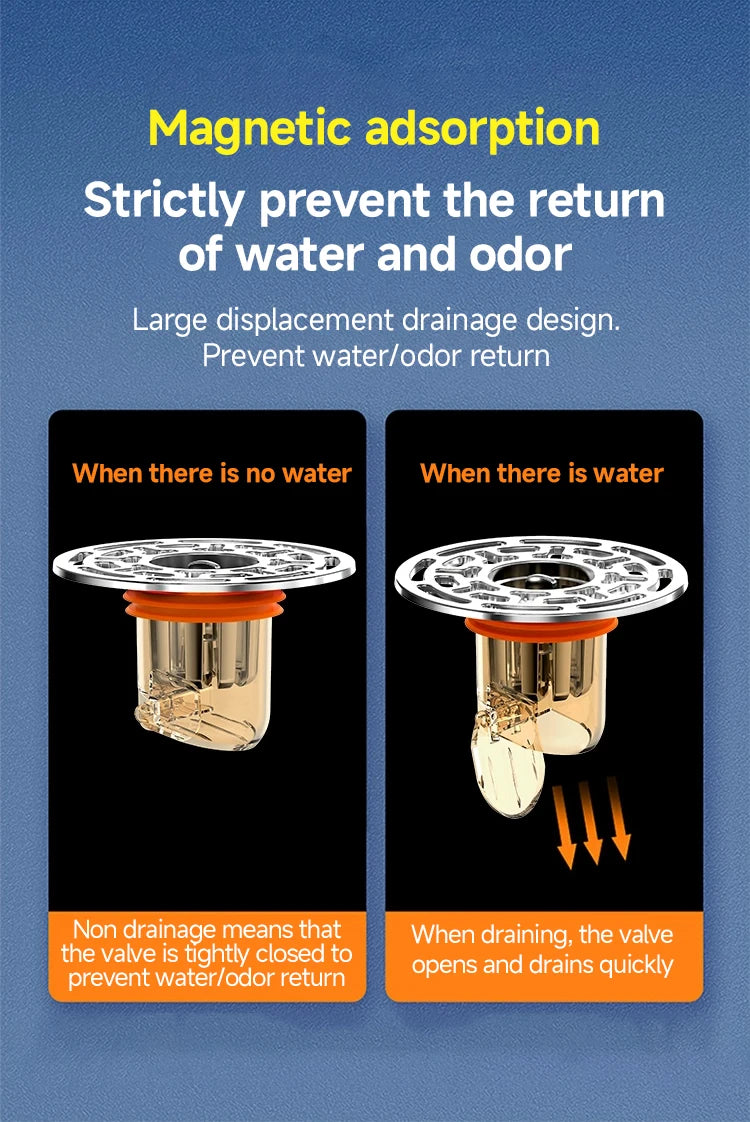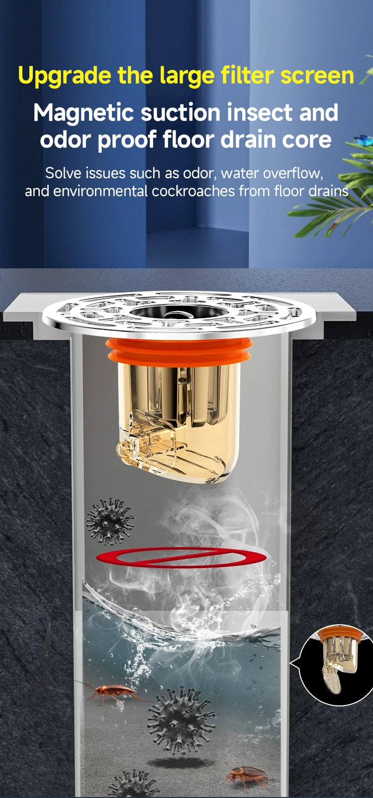 Desagüe de piso magnético con cierre automático, a prueba de olores e insectos, desodorante, antiolor, sin olor, para baño, inodoro, desagüe de ducha