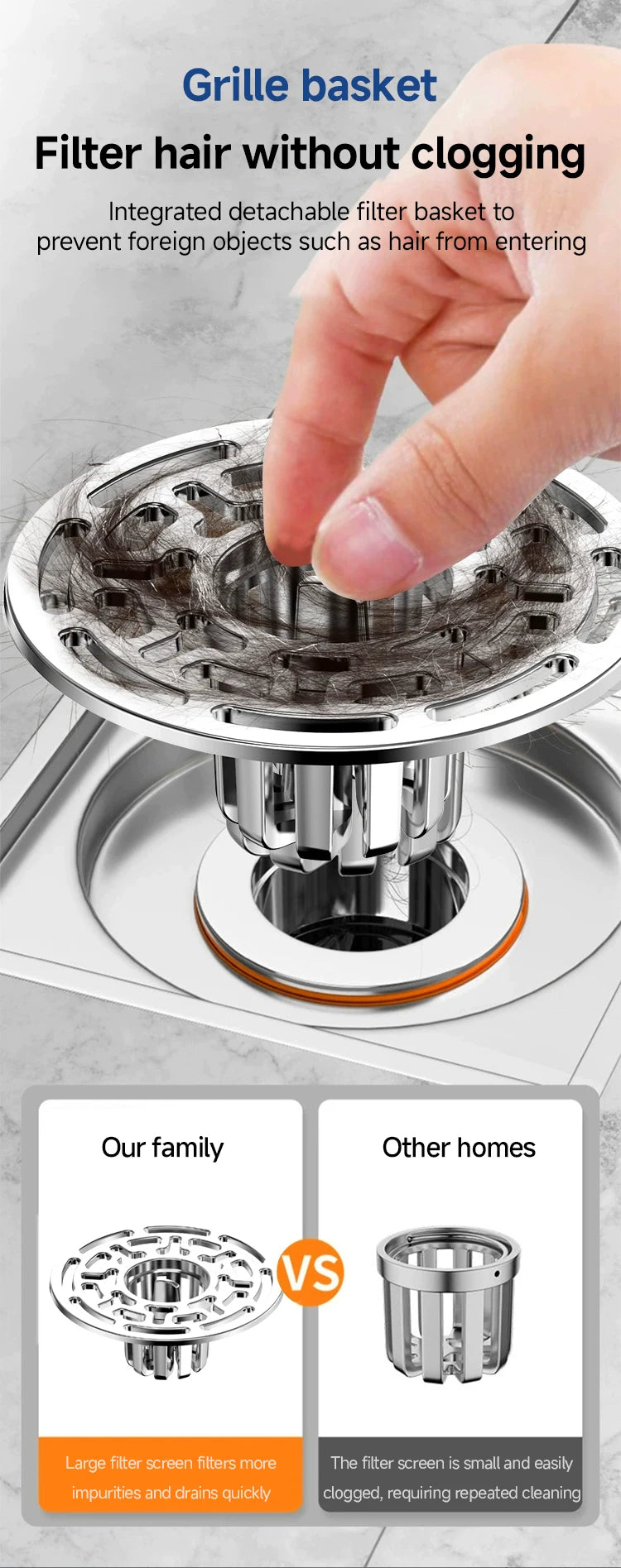 *La cesta del filtro de rejilla evita que se caigan y la cesta del filtro desmontable puede bloquear objetos extraños como el cabello.