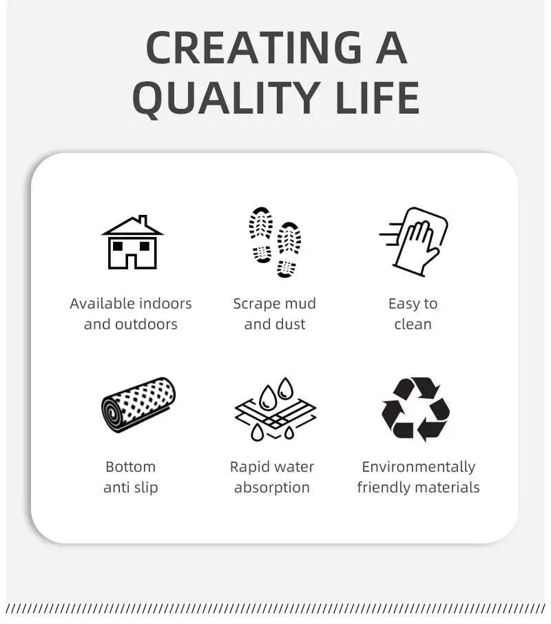 • Absorción de agua: la característica de absorción de agua del tapete ayuda a absorber rápidamente los derrames, lo que reduce el riesgo de resbalones y caídas. Es perfecto para cocinas donde el agua y los derrames son inevitables.