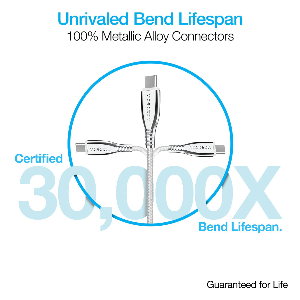 Los puntos de tensión reforzados, la construcción de nailon trenzado balístico indestructible y el cableado de calibre grueso brindan una vida útil inigualable de 30 000 veces, lo que garantiza que este cable pueda soportar el uso diario frecuente y las desconexiones repetidas.