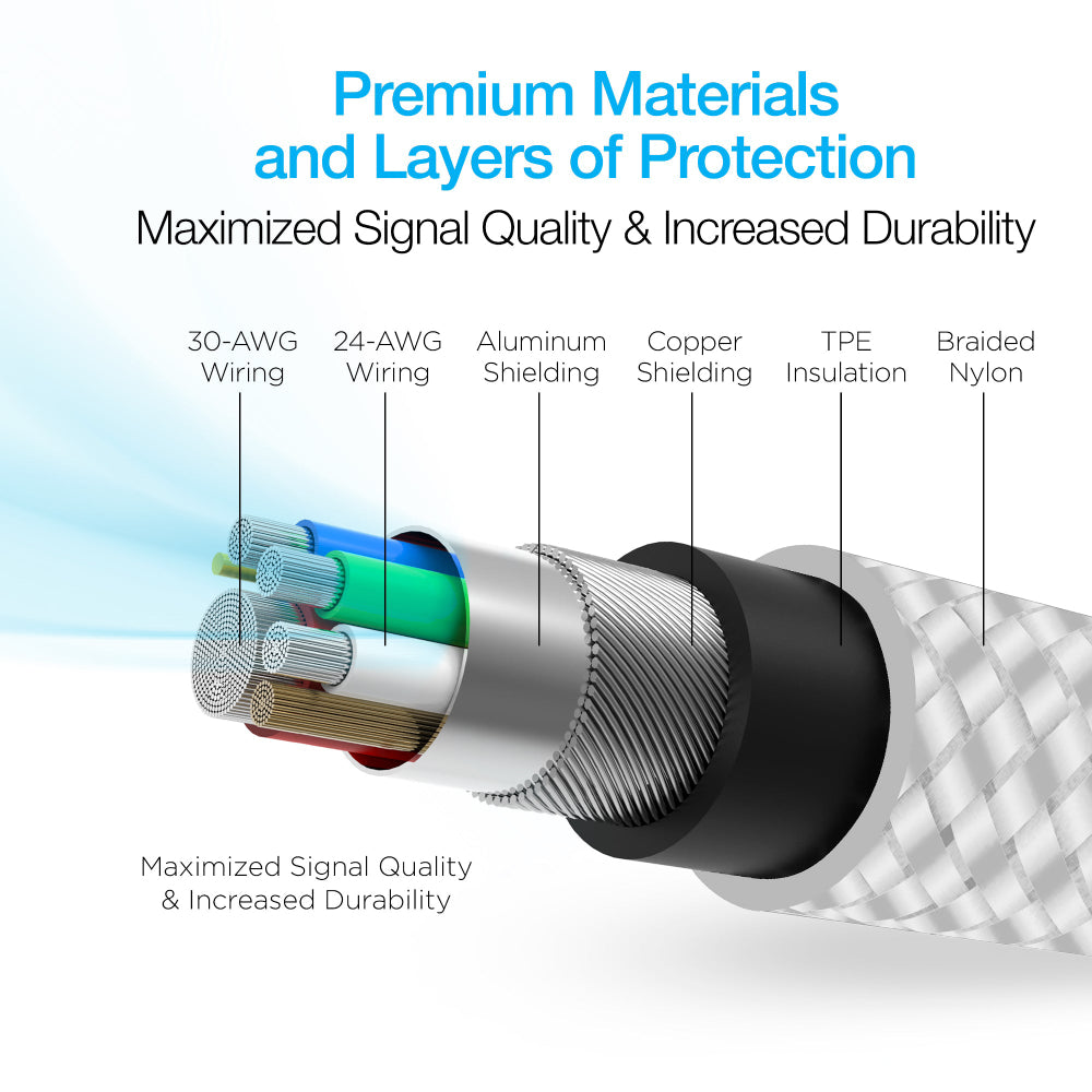El cable de señal de cobre de alta pureza y los conductores de tierra gruesos garantizan una comunicación ultrarrápida y confiable entre sus dispositivos. ¡Transfiera música, imágenes y datos en segundos!