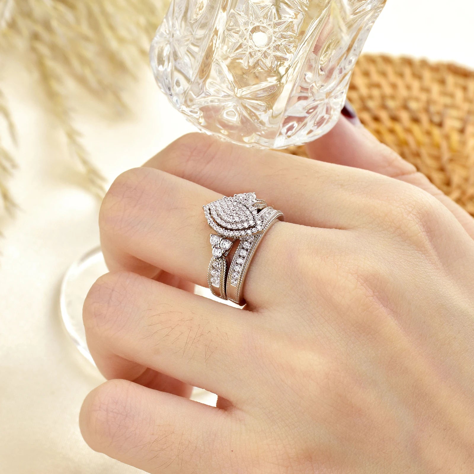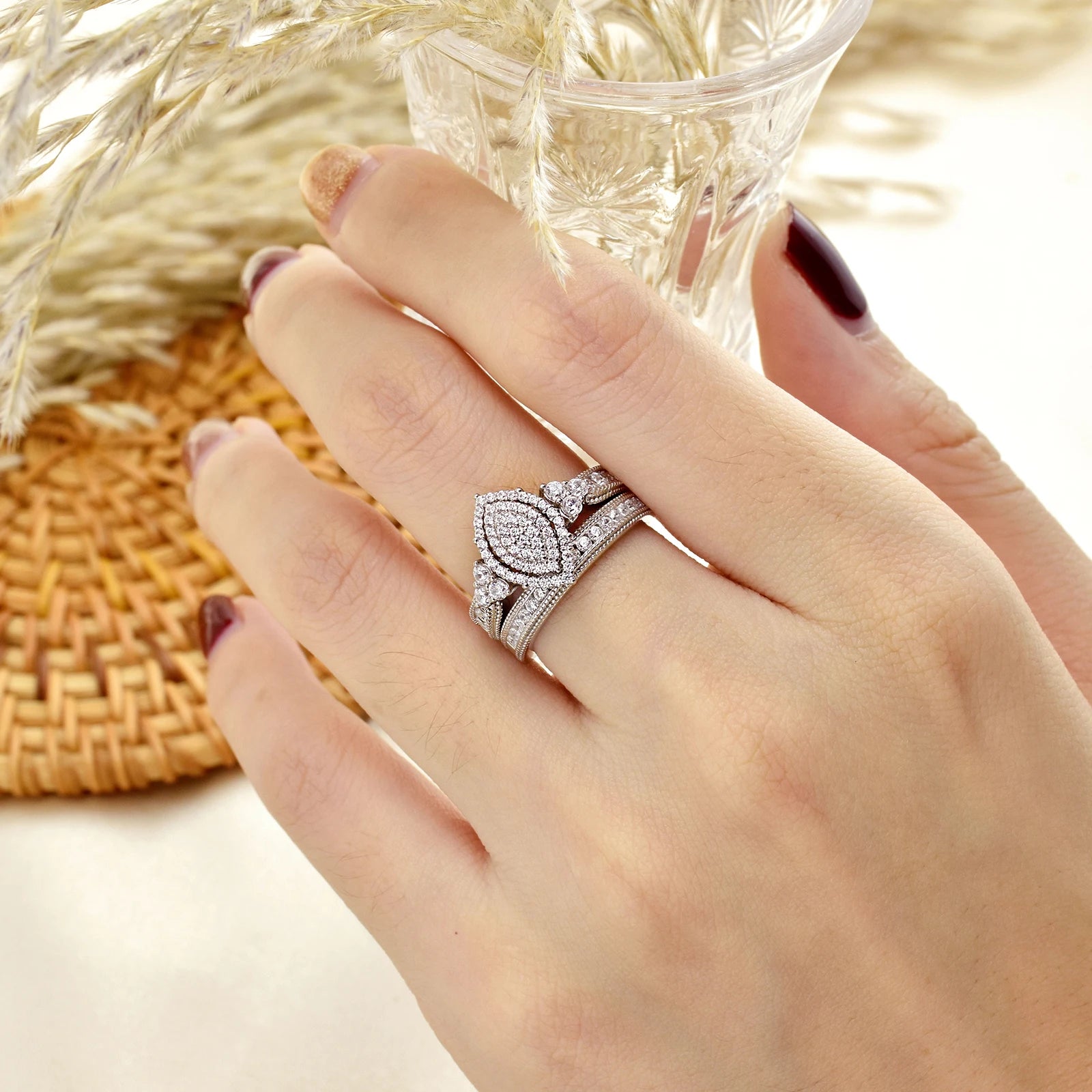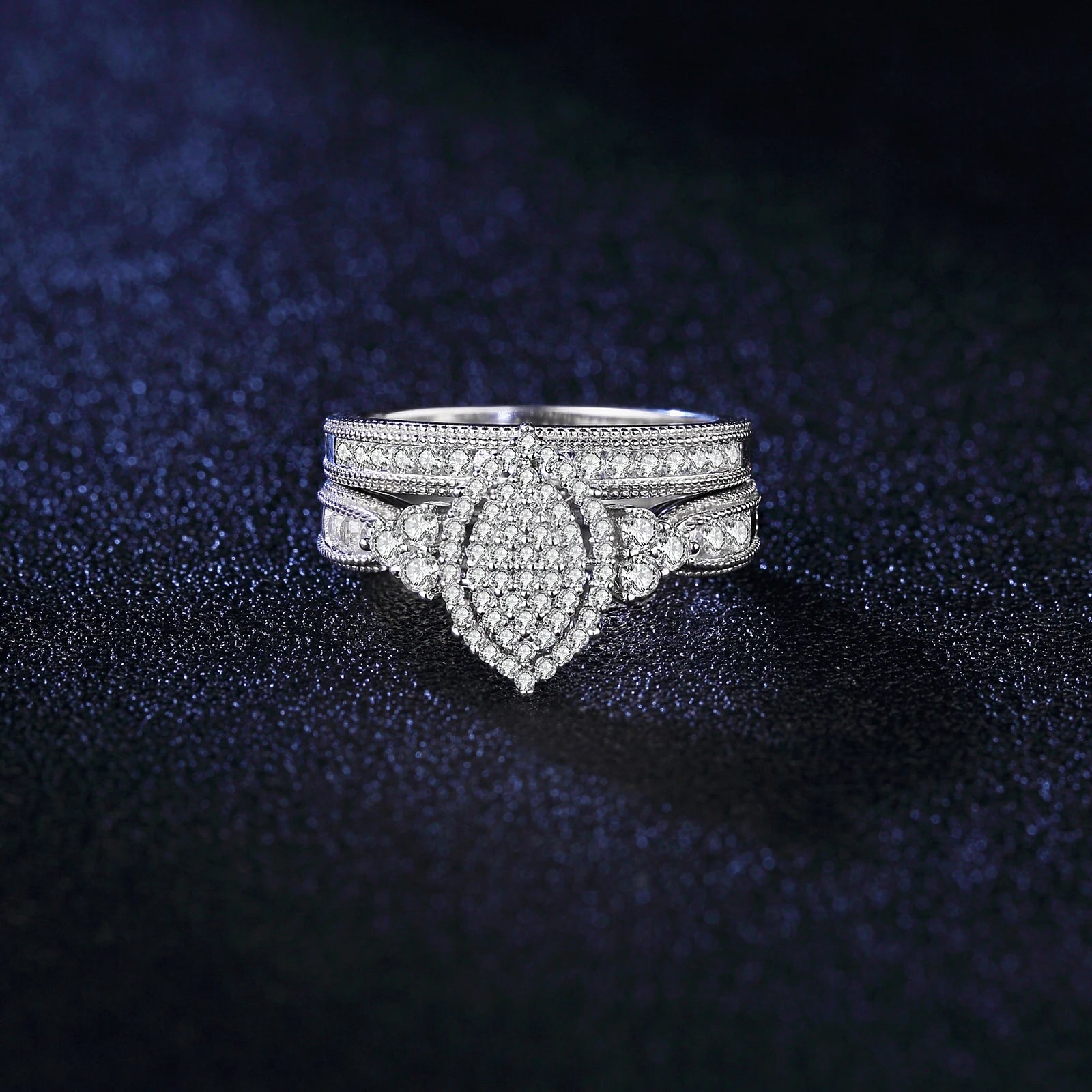 Newshe Halo AAAAA CZ Marquise Cluster Vintage Wedding Ring Set 925 Sterling Silver
