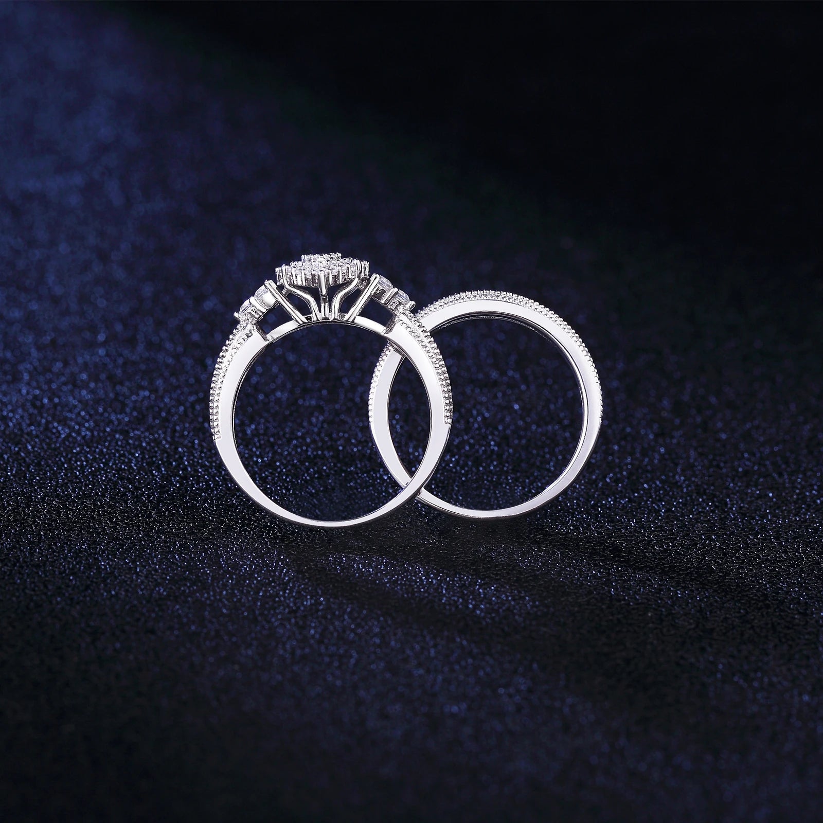 With its vintage-inspired design elegantly merging with modern materials, this ring set is designed to be treasured for generations. Elevate your special occasions with the Newshe Halo AAAAA CZ Marquise Cluster Vintage Wedding Engagement Ring Set, an ideal representation of love and commitment.