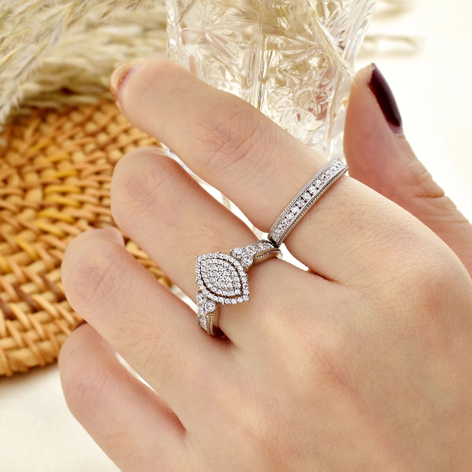 Product Highlights:- Exquisite marquise cluster halo design, perfect for vintage lovers.