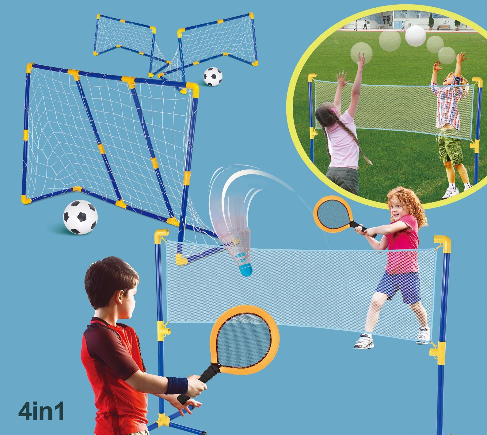 Este conjunto combinado incluye 3 juegos. Pon a prueba tus habilidades con las funciones de fútbol, voleibol y bádminton. Este producto es una combinación opcional. El conjunto combinado Carnival se puede utilizar para cualquier tipo de actividades al aire libre y en interiores, ideal para juegos familiares de niños y adultos. Puede entrenar y promover la coordinación mano-ojo y el espíritu de equipo de los niños, así como las habilidades matemáticas básicas mientras juegan estos divertidos juegos.