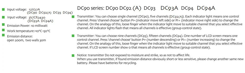 1. Este paquete solo incluye 1 transmisor de un solo canal DC90 y SIN BATERÍA .